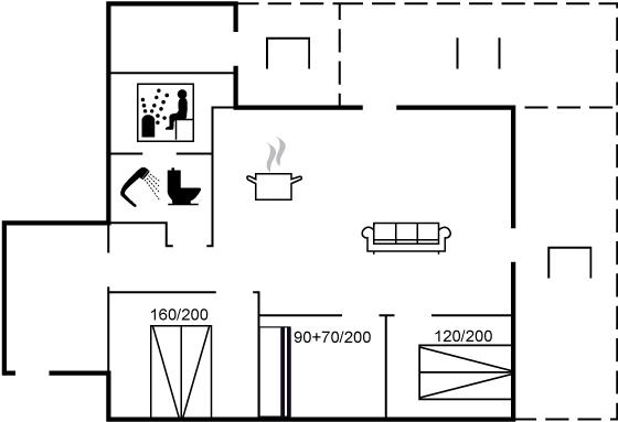Der er i alt 3 soveværelser. Sovepladserne fordeler sig på: 4 sovepladser i dobbeltsenge. 2 sovepladser i køjeseng.