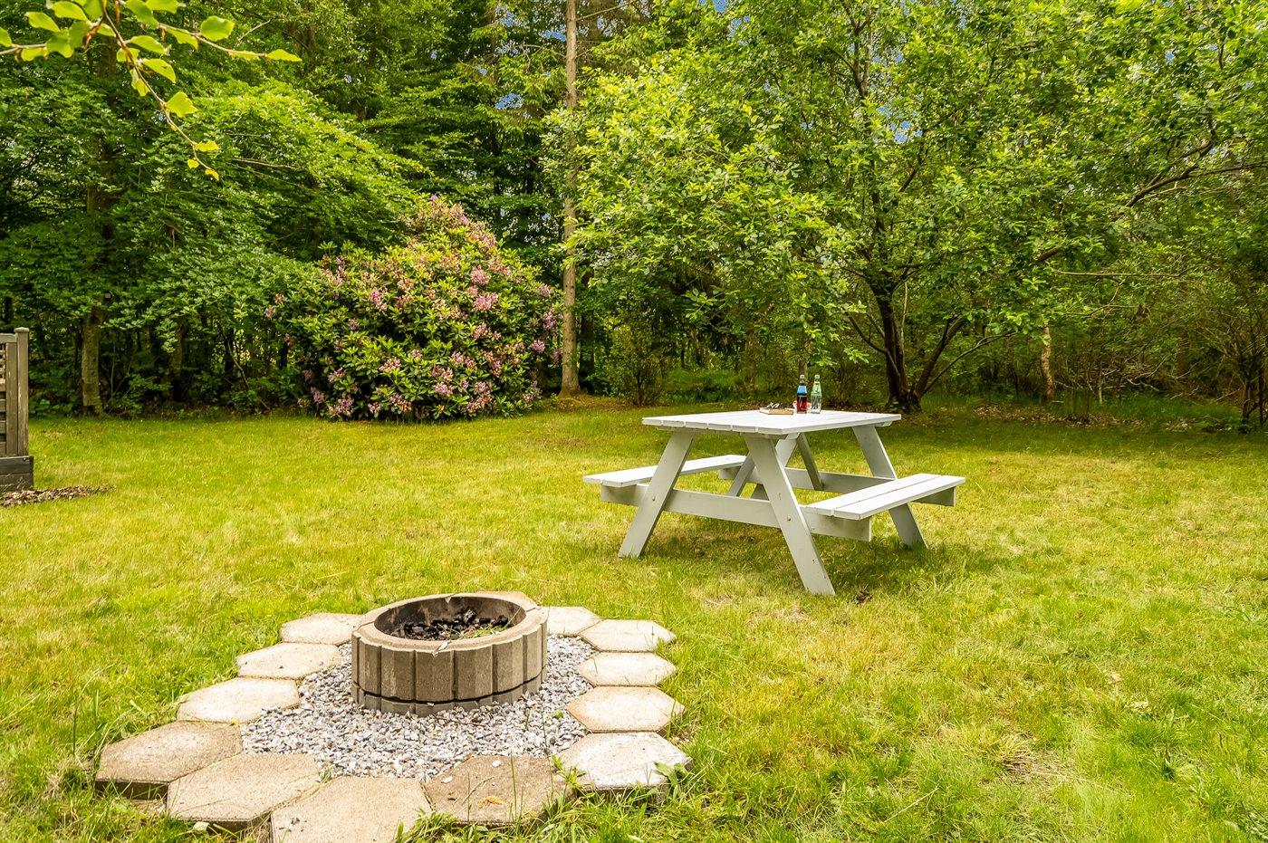 Ferieboligen er beliggende på en 1700 m² stor naturgrund. Grunden er indhegnet. Der er 790 m til havet. Der er 1500 m til fjorden. Nærmeste forretning er beliggende i en afstand af 4400 m. Der er en golfbane i en afstand af 14600 m. Til ferieboligen hører åbent terrasseareal. Desuden er der overdækket terrasse. Bålfad. Grill til rådighed. Parkering ved ferieboligen.