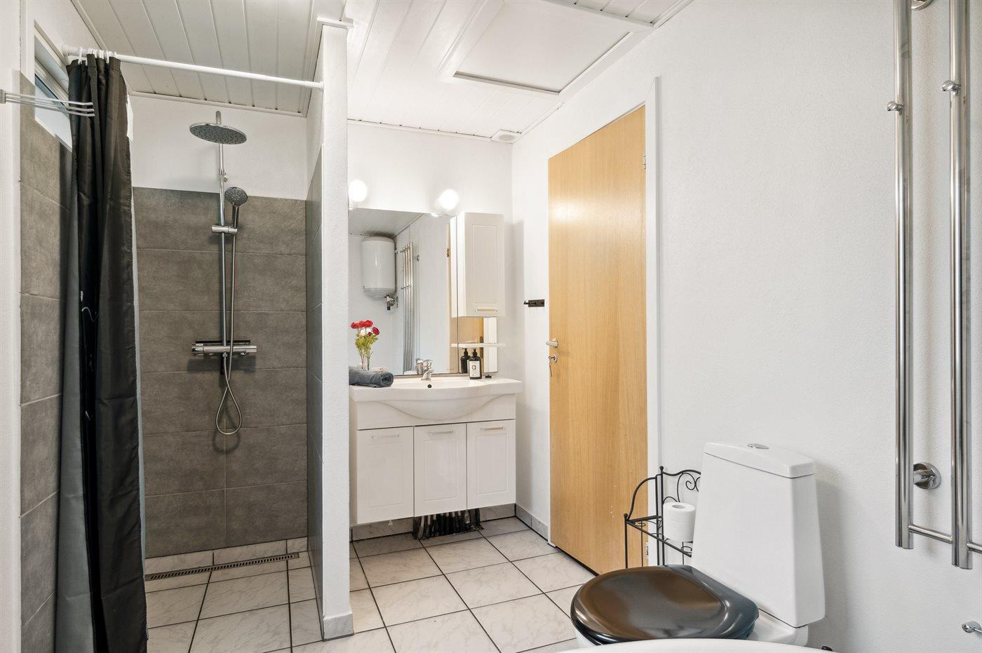 Der er 1 badeværelse med bruseniche og 1 toilet.. Der er gulvvarme på 1 badeværelse.