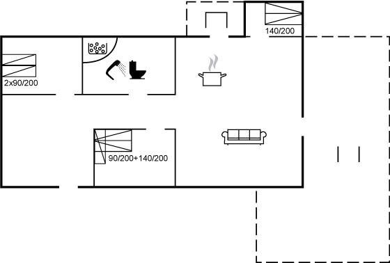 Der er i alt 3 soveværelser. Sovepladserne fordeler sig på: 2 sovepladser i dobbeltseng. 2 sovepladser i enkeltsenge. 2 sovepladser i køjeseng. Derudover er der 1 stk. barneseng.
