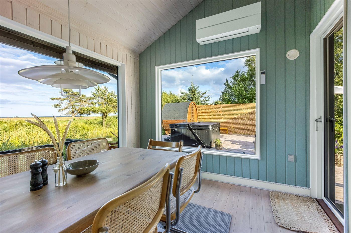 Skønt sommerhus nær Kattegats kyst med spabad, sauna og havudsigt, renoveret i 2024.