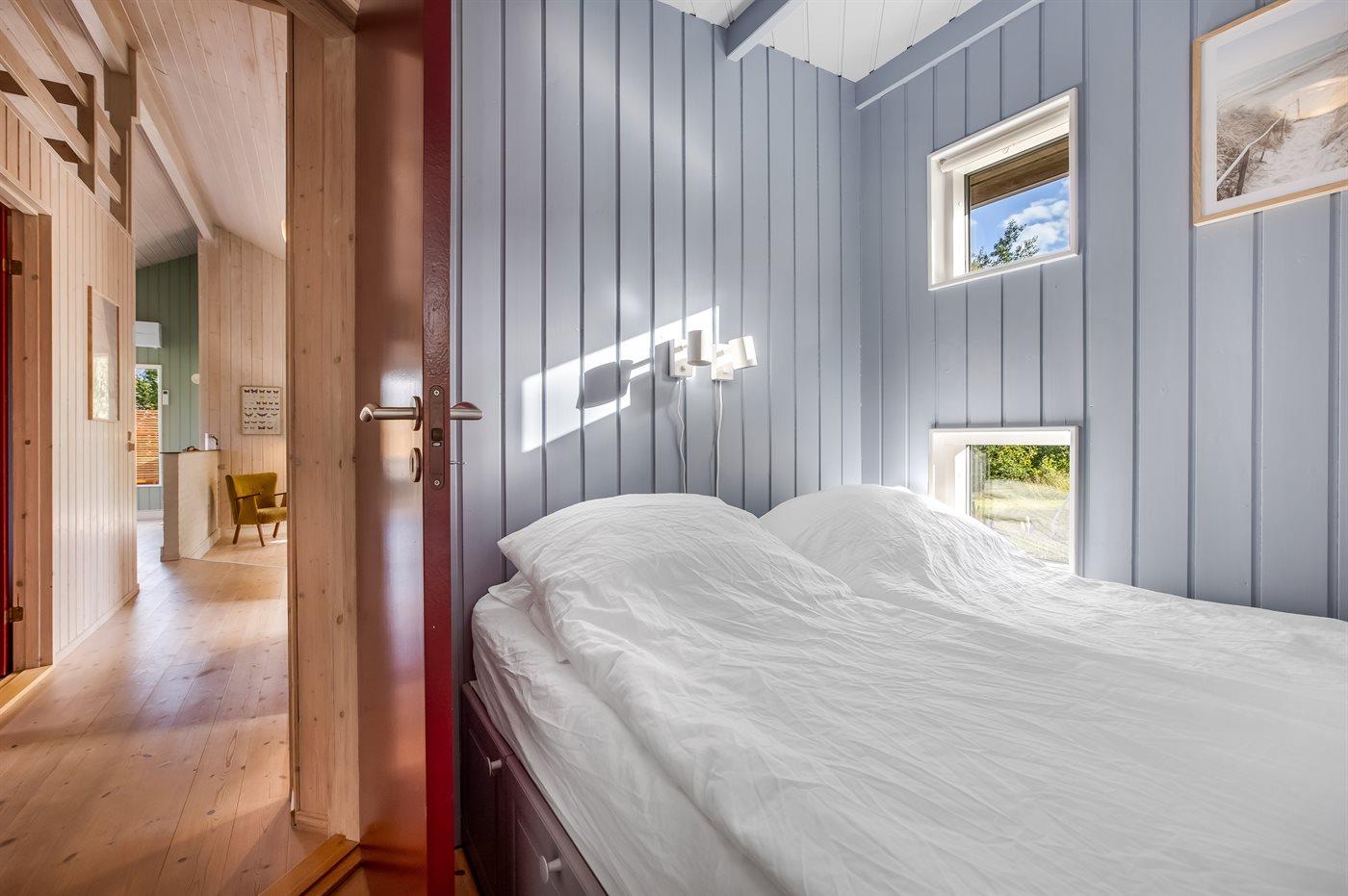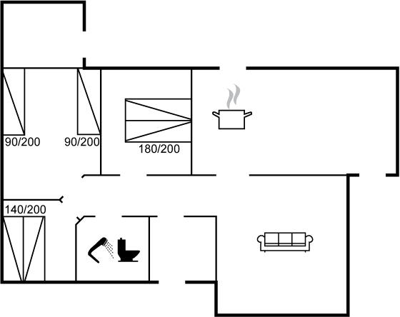 Der er i alt 3 soveværelser. Sovepladserne fordeler sig på: 4 sovepladser i dobbeltsenge. 2 sovepladser i enkeltsenge. Derudover er der 1 stk. barneseng.