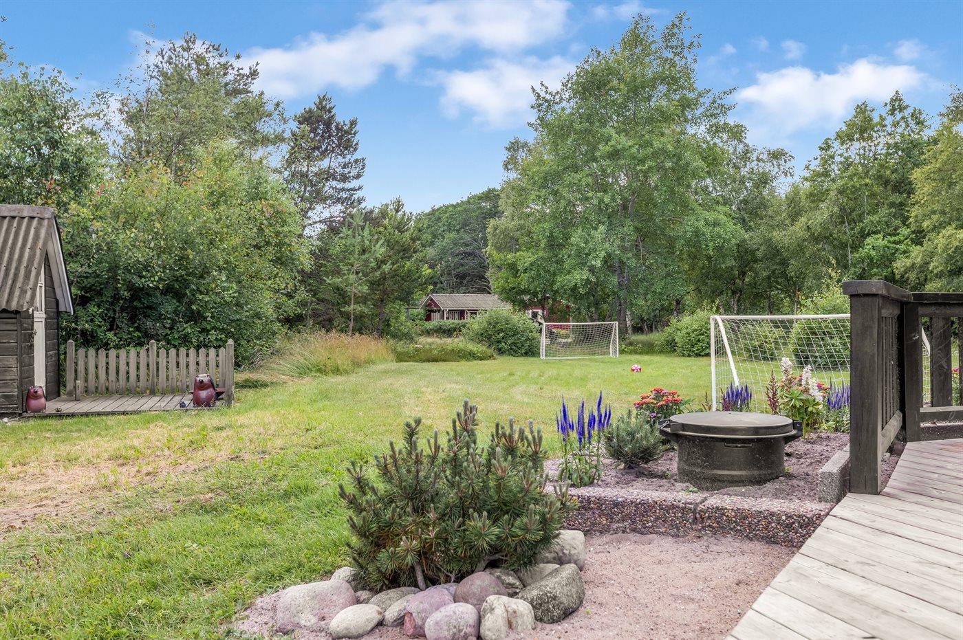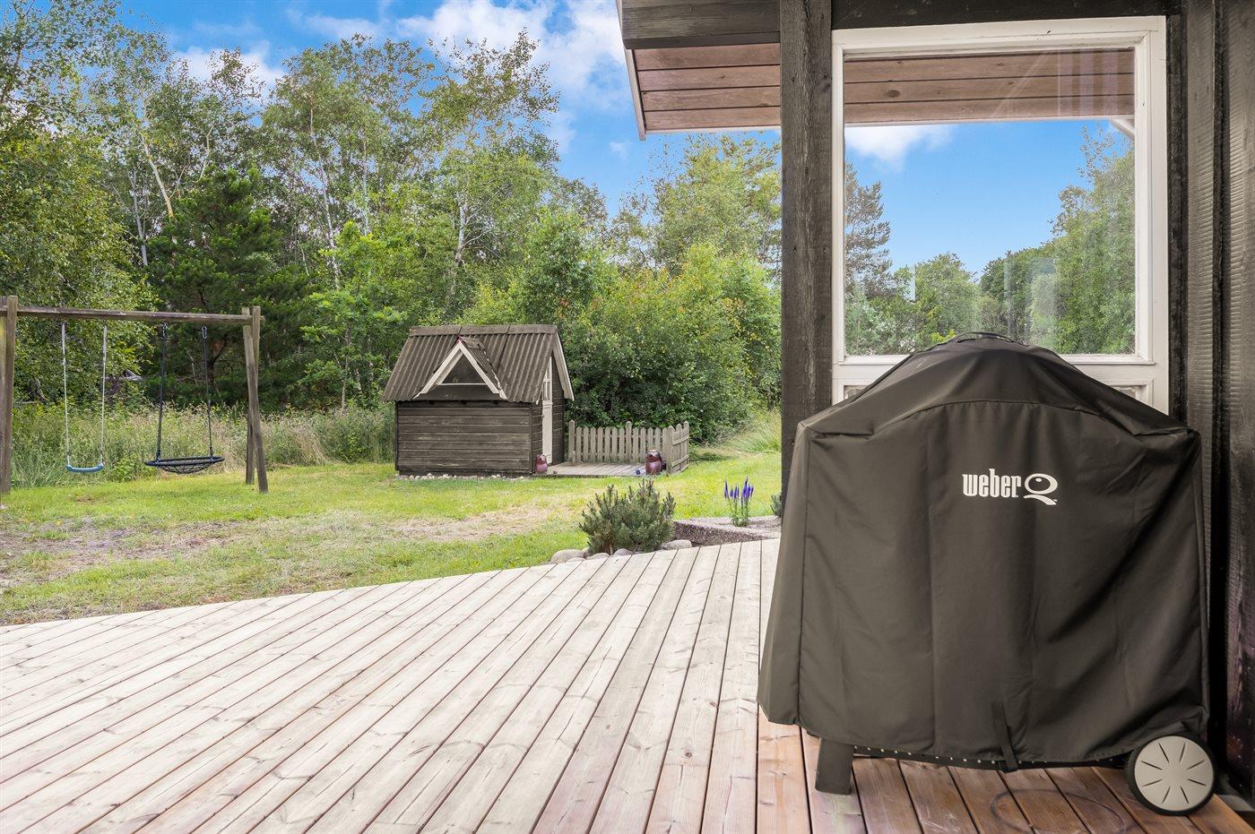 Ferieboligen er beliggende på en 3444 m² stor naturgrund. Der er 400 m til havet. Nærmeste forretning er beliggende i en afstand af 2500 m. Til ferieboligen hører åbent terrasseareal. Desuden er der overdækket terrasse. Gynge. Fodboldmål. Udendørs sauna. Udendørs bruser. Grill til rådighed. Parkering ved ferieboligen.