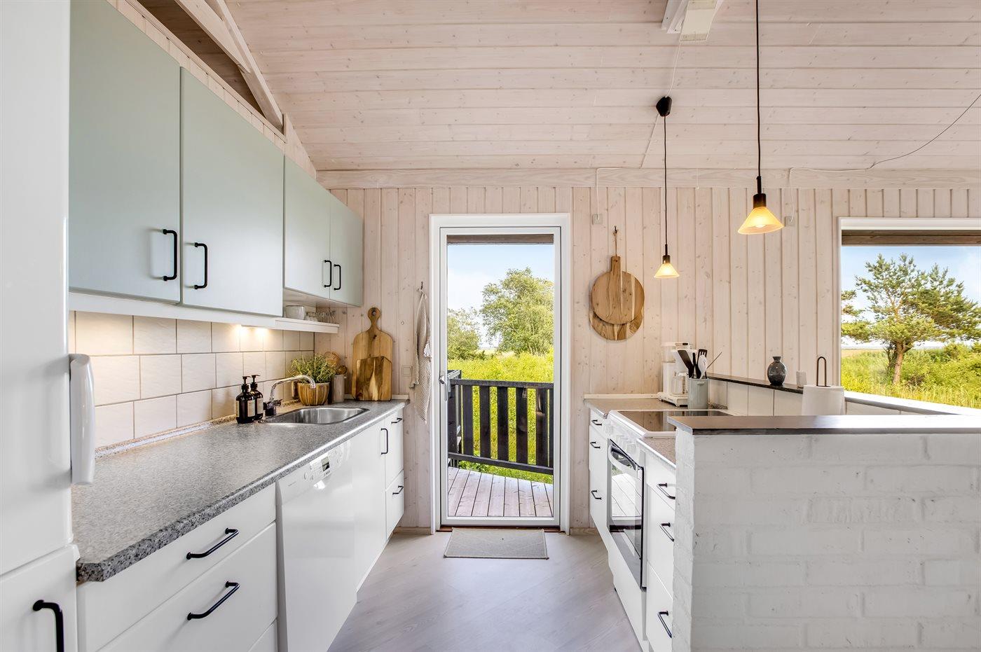 Indvendig fremstår sommerhuset lyst og i fin stand. Husets hjerte er det lyse køkken/alrum og stue i ét med masser af lysindfald og med direkte adgang til den skønne terrasse. Sommerhuset er godt indrettet, og her er fint plads til f.eks. en børnefamilie eller en ferietur med bedsteforældre. Området er oplagt til gåture i den dejlige natur og, hvis du ønsker en kontrast til disse rolige omgivelser, ligger Øster Hurup blot ca. 5 kilometer væk. Her findes en fin badestrand samt gode indkøbsmuligheder. Byen oser af feriestemning specielt i sommerhalvåret, hvor der også findes et godt udvalg af ishuse og caféer m.m.