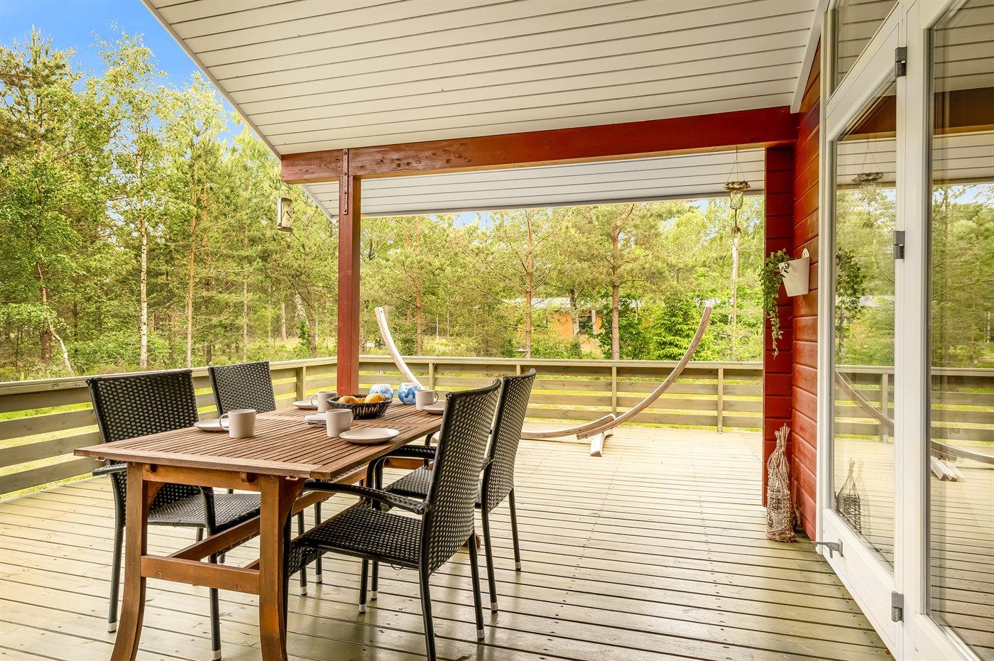 Ferieboligen er beliggende på en 2512 m² stor naturgrund. Der er 200 m til havet. Nærmeste forretning er beliggende i en afstand af 3100 m. Der er en golfbane i en afstand af 13250 m. Til ferieboligen hører 40 m² terrasseareal. Desuden er der 15 m² overdækket terrasse. Shelter. Grill til rådighed. Parkering ved ferieboligen.