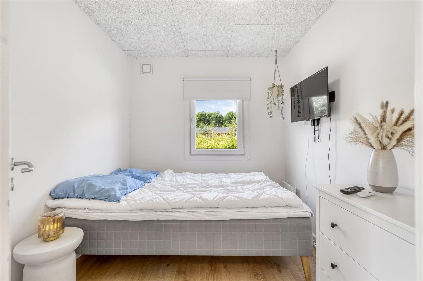 Der er i alt 3 soveværelser. Sovepladserne fordeler sig på: 6 sovepladser i dobbeltsenge. 2 sovepladser i sovesofa (dobbelt). 2 af disse sovepladser befinder sig i stuen. Derudover er der 1 stk. barneseng.