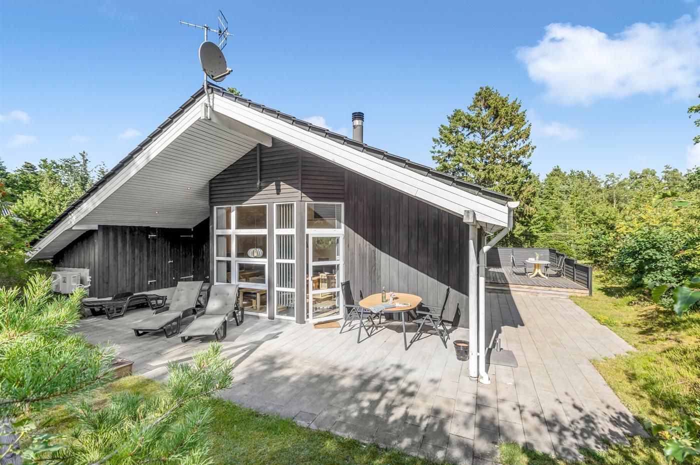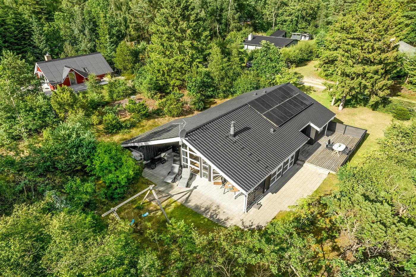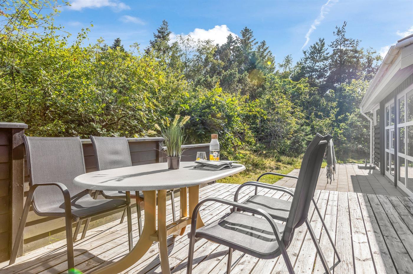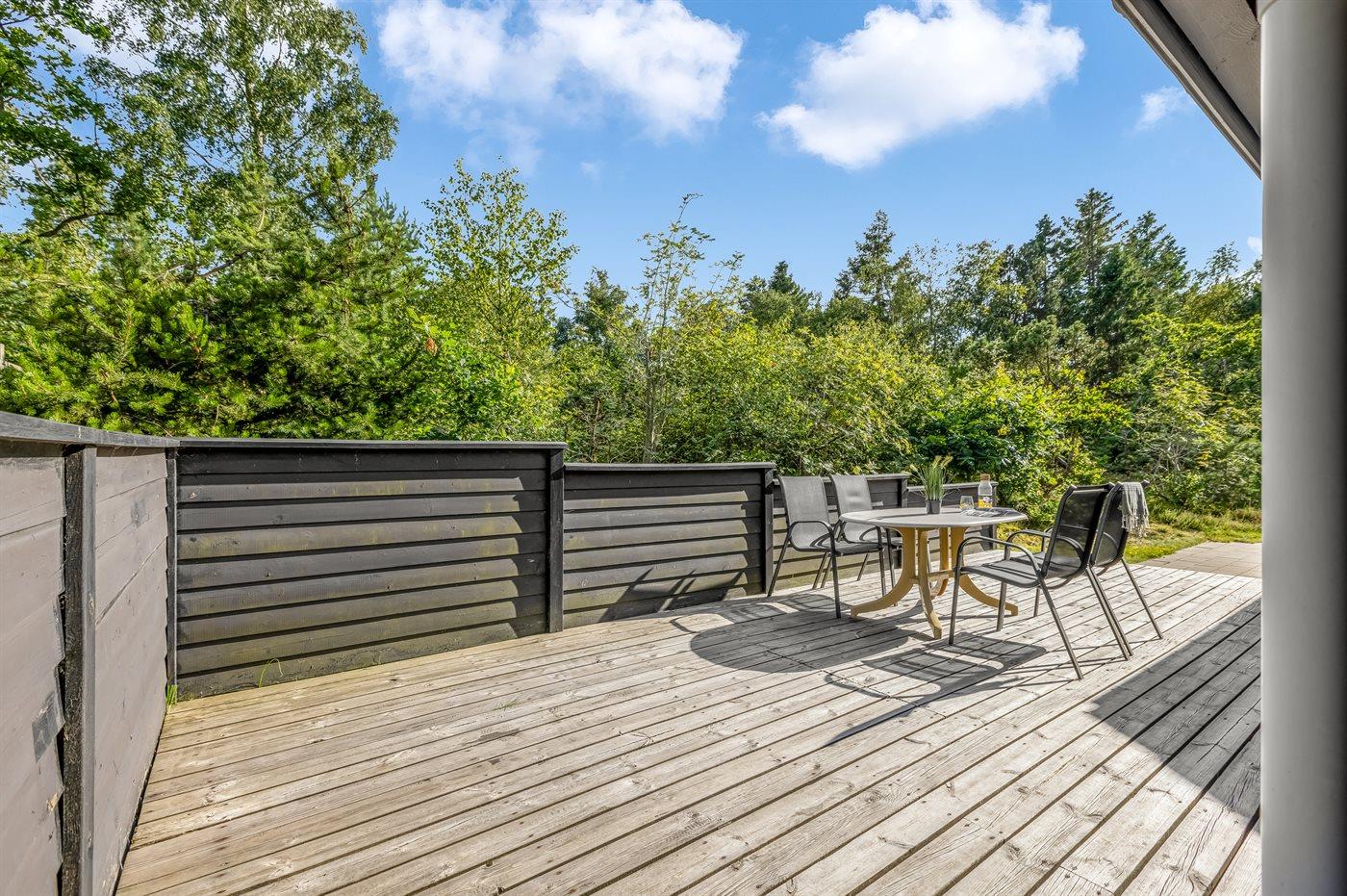 Ferieboligen er beliggende på en 1218 m² stor havegrund. Der er 350 m til havet. Nærmeste forretning er beliggende i en afstand af 2200 m. Der er en golfbane i en afstand af 13800 m. Til ferieboligen hører åbent terrasseareal. Desuden er der overdækket terrasse. Gynge. Sandkasse. Grill til rådighed. Der er installeret stik til opladning af elbil. Type 2 stik. Med 11 kW ladeeffekt. Parkering ved ferieboligen.