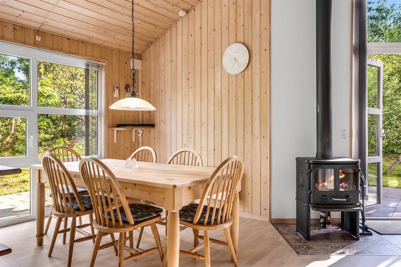 Sommerhuset egner sig til 6 personer. Ferieboligen er på 93 m² og er bygget i 2000. Det er ikke tilladt at medbringe husdyr. Ferieboligen er udstyret med 1 energibesparende luft til luft varmepumpe. Ferieboligen har vaskemaskine. Tørretumbler. Frysekapacitet på 110 liter. Der er desuden brændeovn. Til de små er der 1 stk. barnestol.