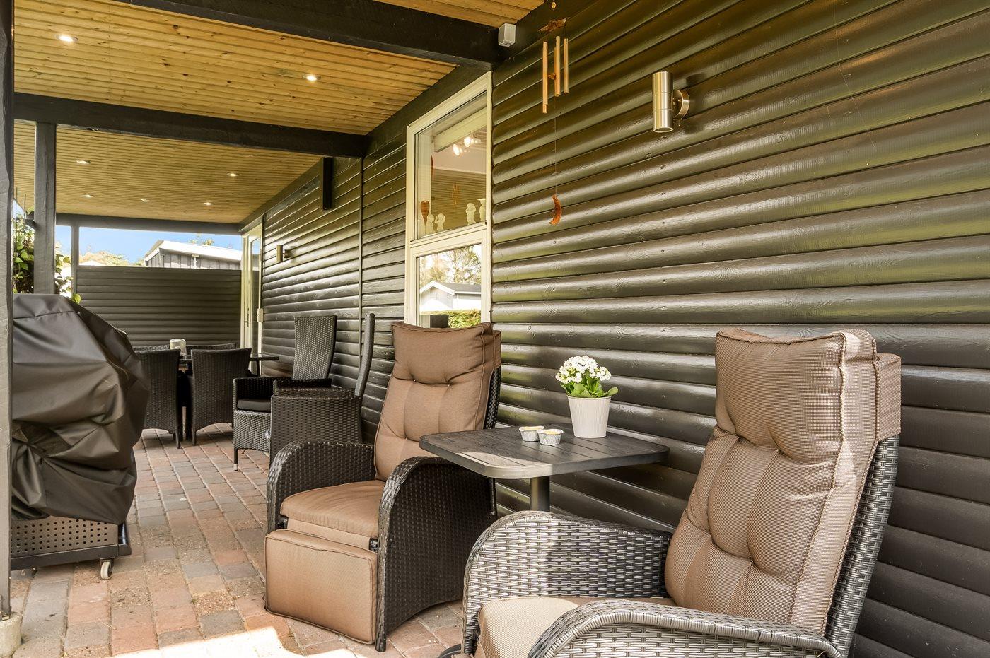 Ferieboligen er beliggende på en 1260 m² stor havegrund. Der er 150 m til havet. Nærmeste forretning er beliggende i en afstand af 3300 m. Der er en golfbane i en afstand af 15000 m. Til ferieboligen hører åbent terrasseareal. Desuden er der overdækket terrasse. Bålsted. Grill til rådighed. Parkering ved ferieboligen.