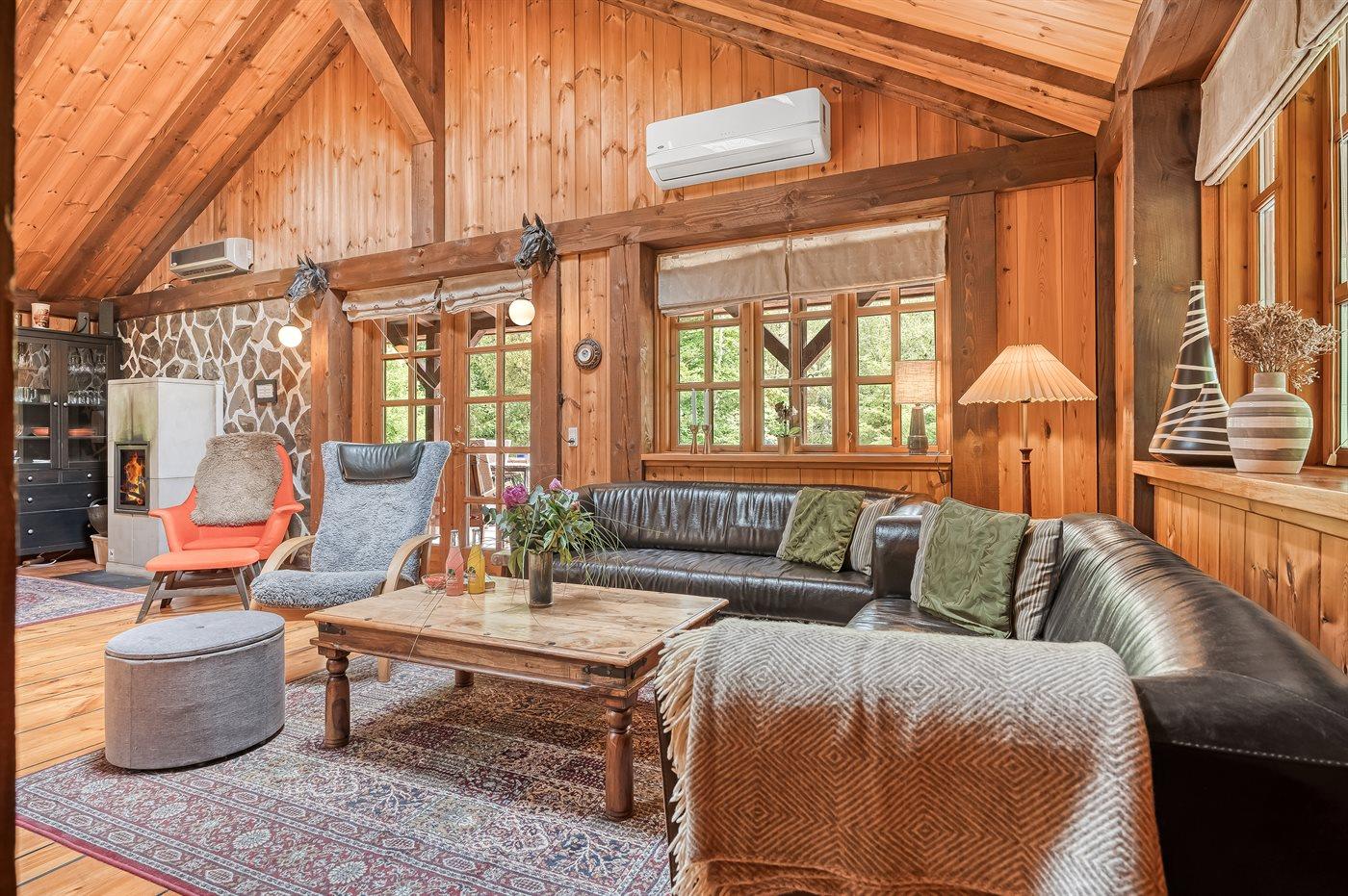 Et fantastisk bjælke-sommerhus med indendørs spa og udendørs vildmarkskar.