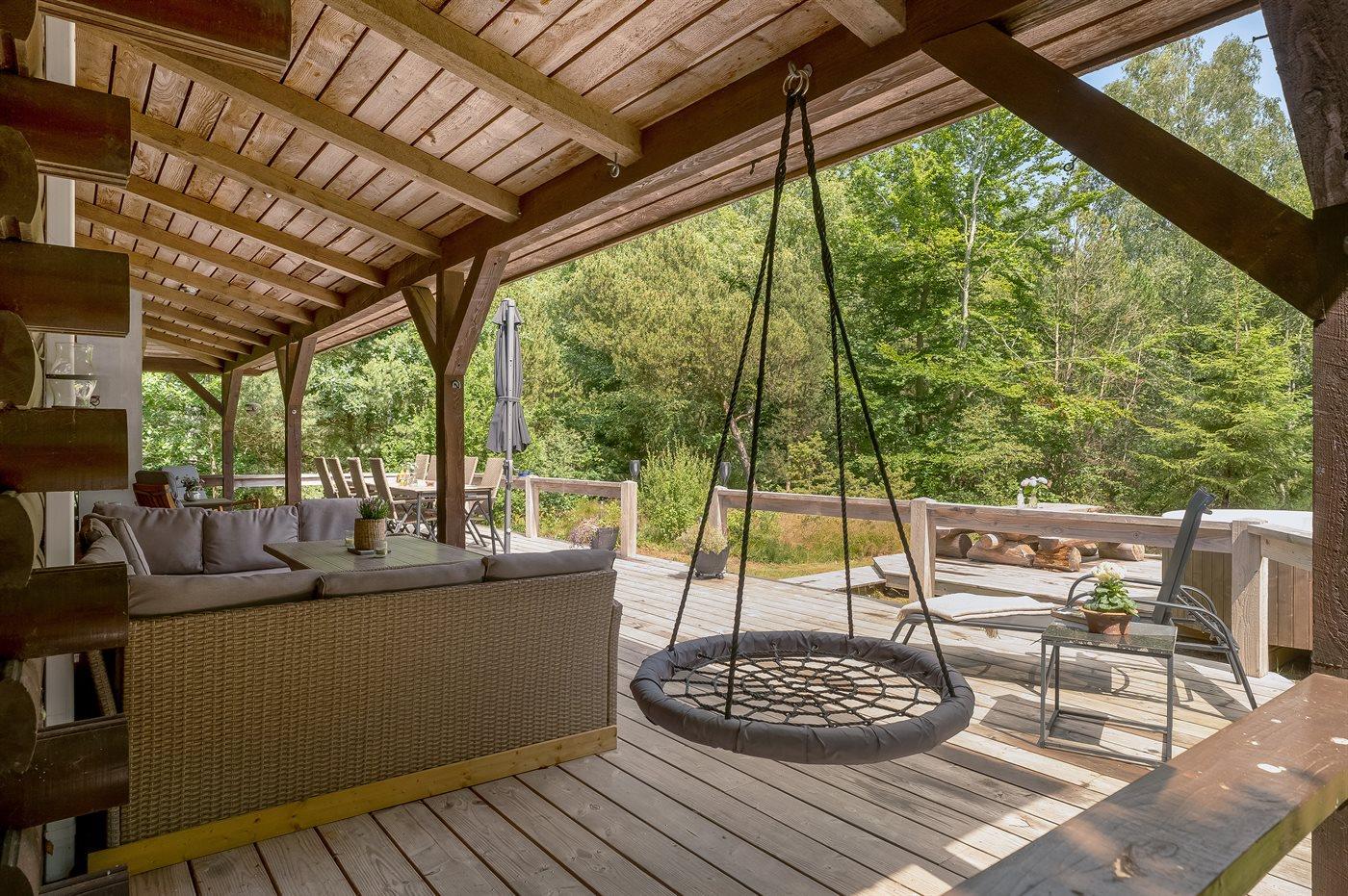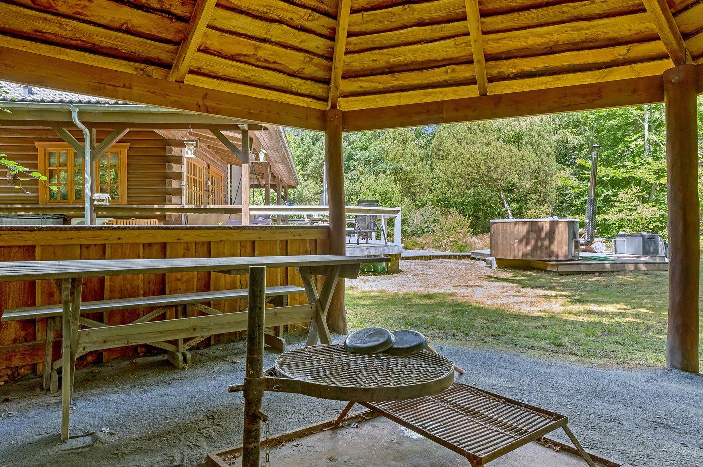 Lækkert bjælke-sommerhus med spa og vildmarkskar