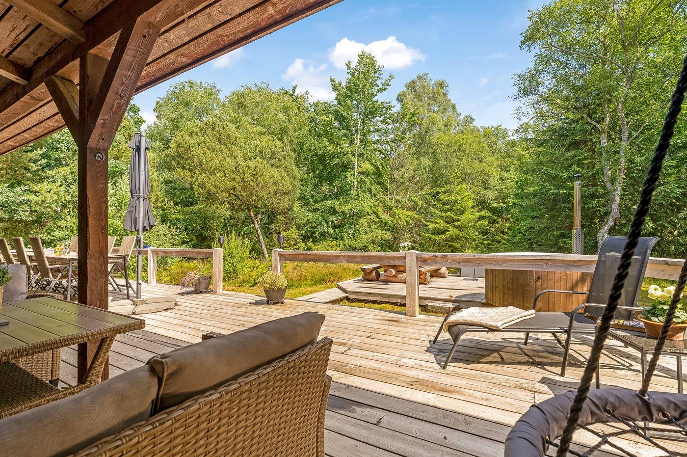 Huset ligger på en stor grund - helt privat og omgivet af skov.