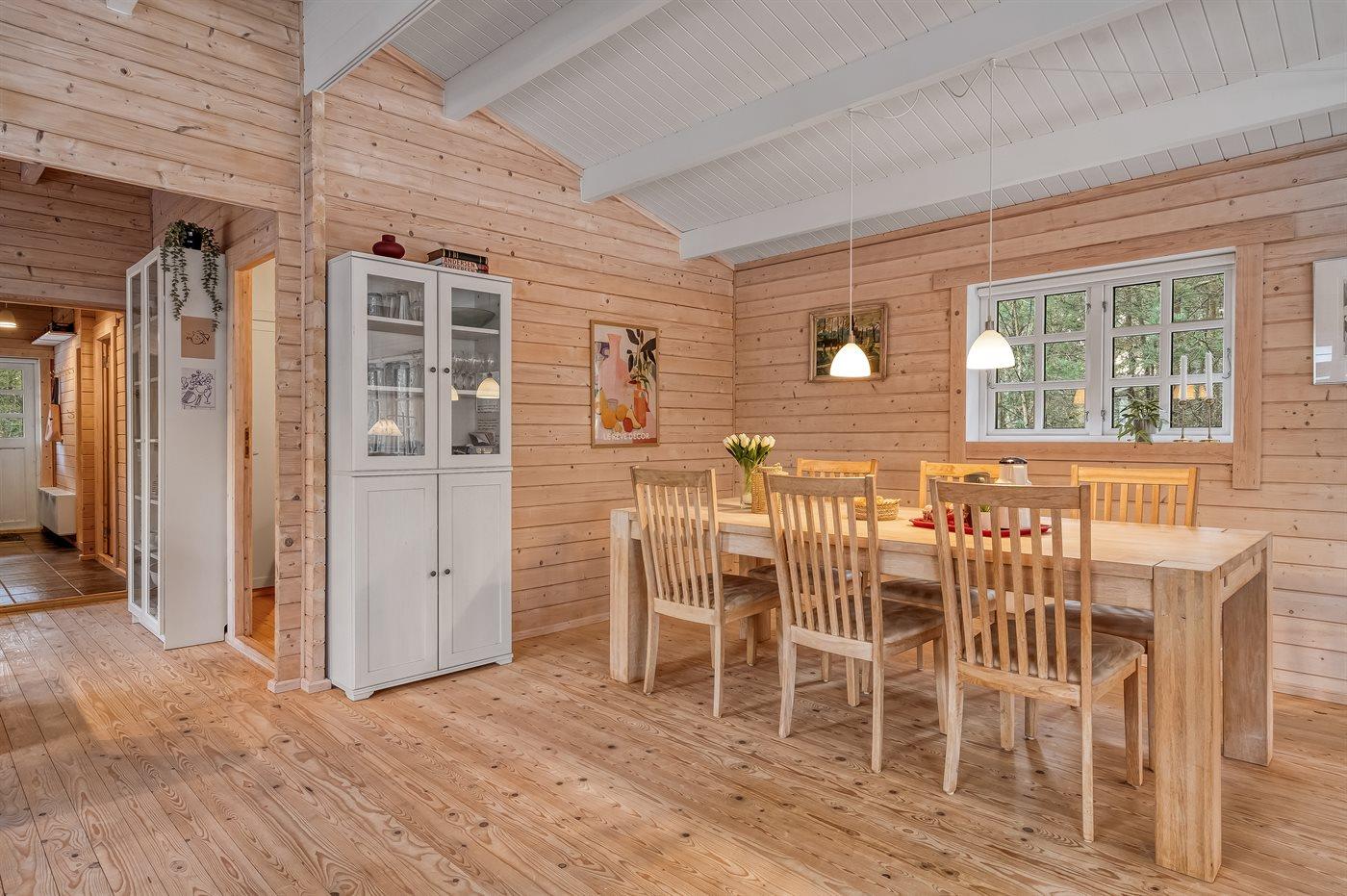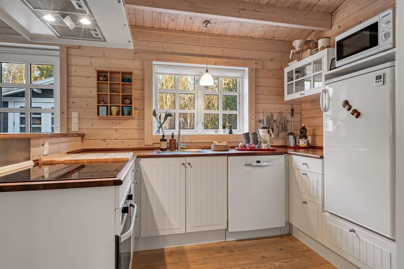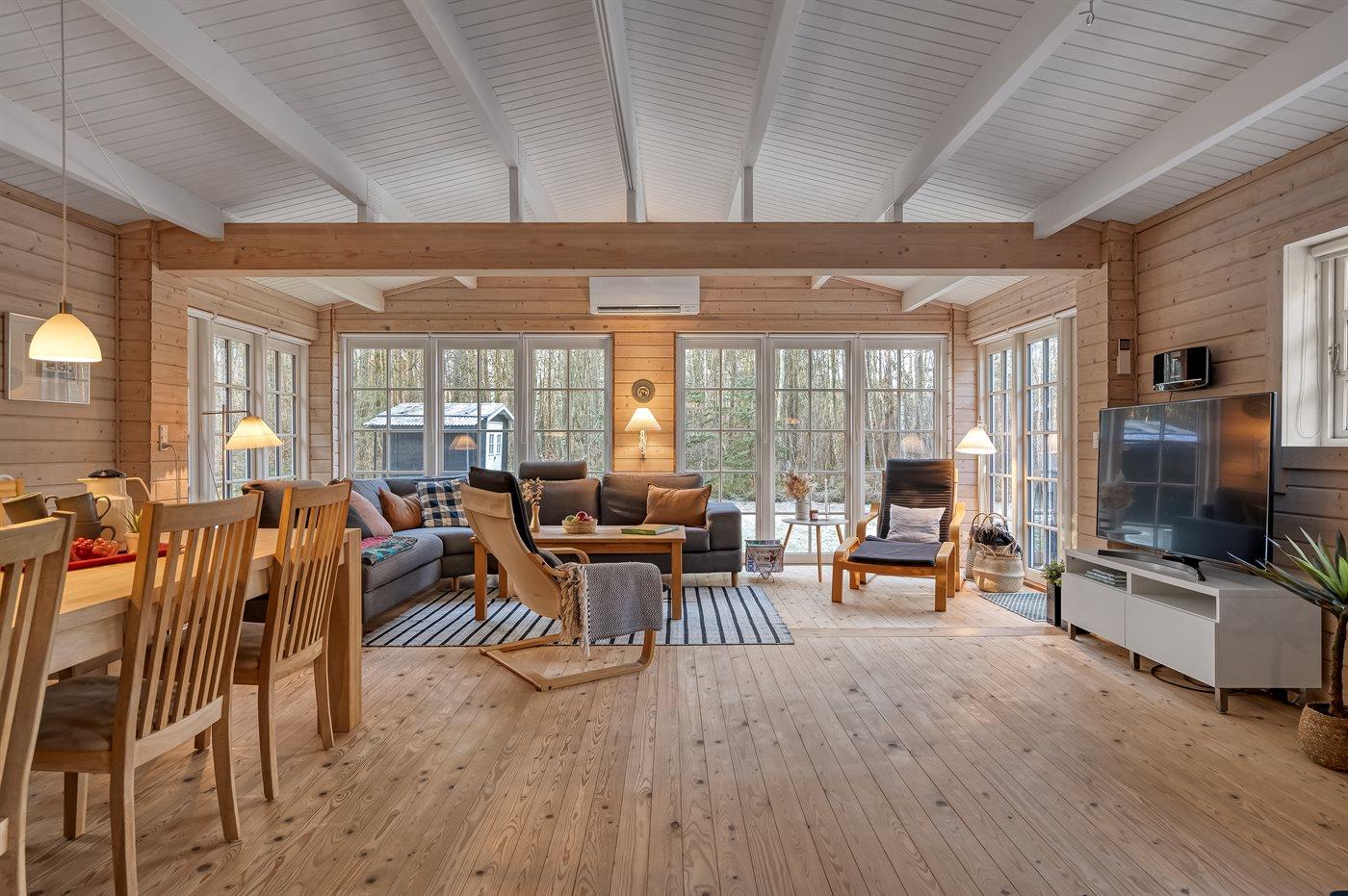 Sommerhuset har plads til 6 personer og fremstår lyst, velholdt og hyggelig. Her kan I nyde morgenkaffen på den store terrasse, tilberede aftensmaden på grillen og samles omkring bålstedet, når aftenen falder på. Med både brændeovn og energivenlig varmepumpe er huset velegnet til ophold året rundt.