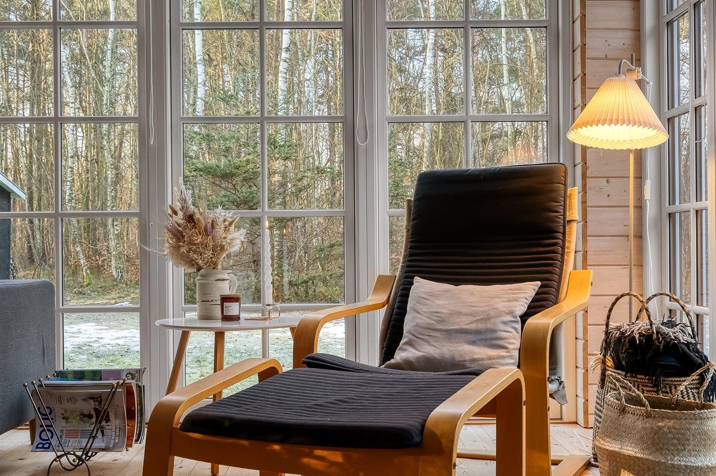 Midt i skov og plantage finder I dette stemningsfulde sommerhus, hvor roen og naturen er i centrum. Her er de perfekte rammer for en afslappende ferie med tid til nærvær og fordybelse.