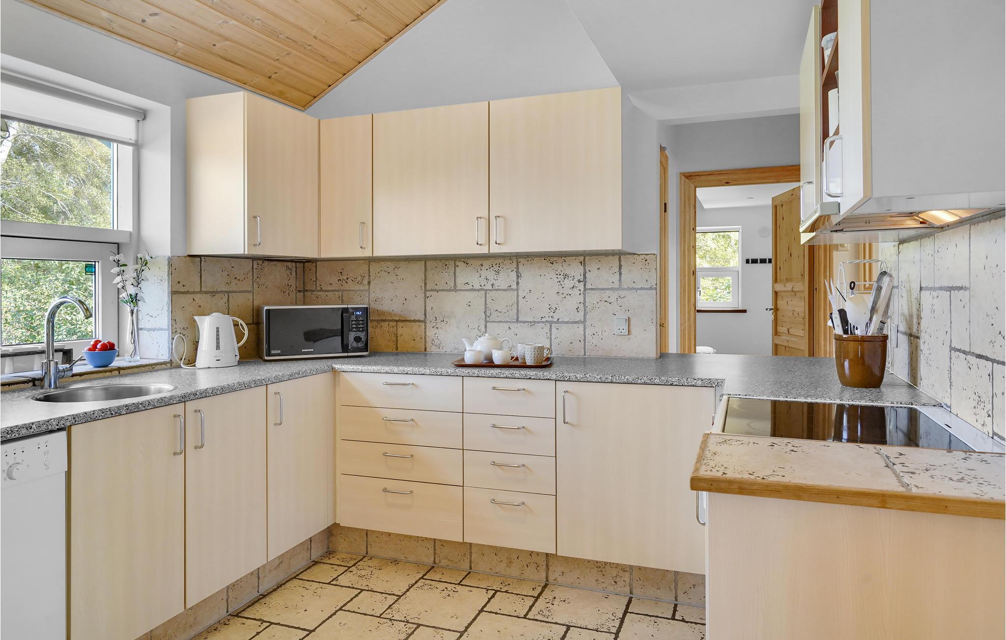Velindrettet feriehus i Helberskov med terrasse, sauna og spabad, tæt på Mariager og fjorden.