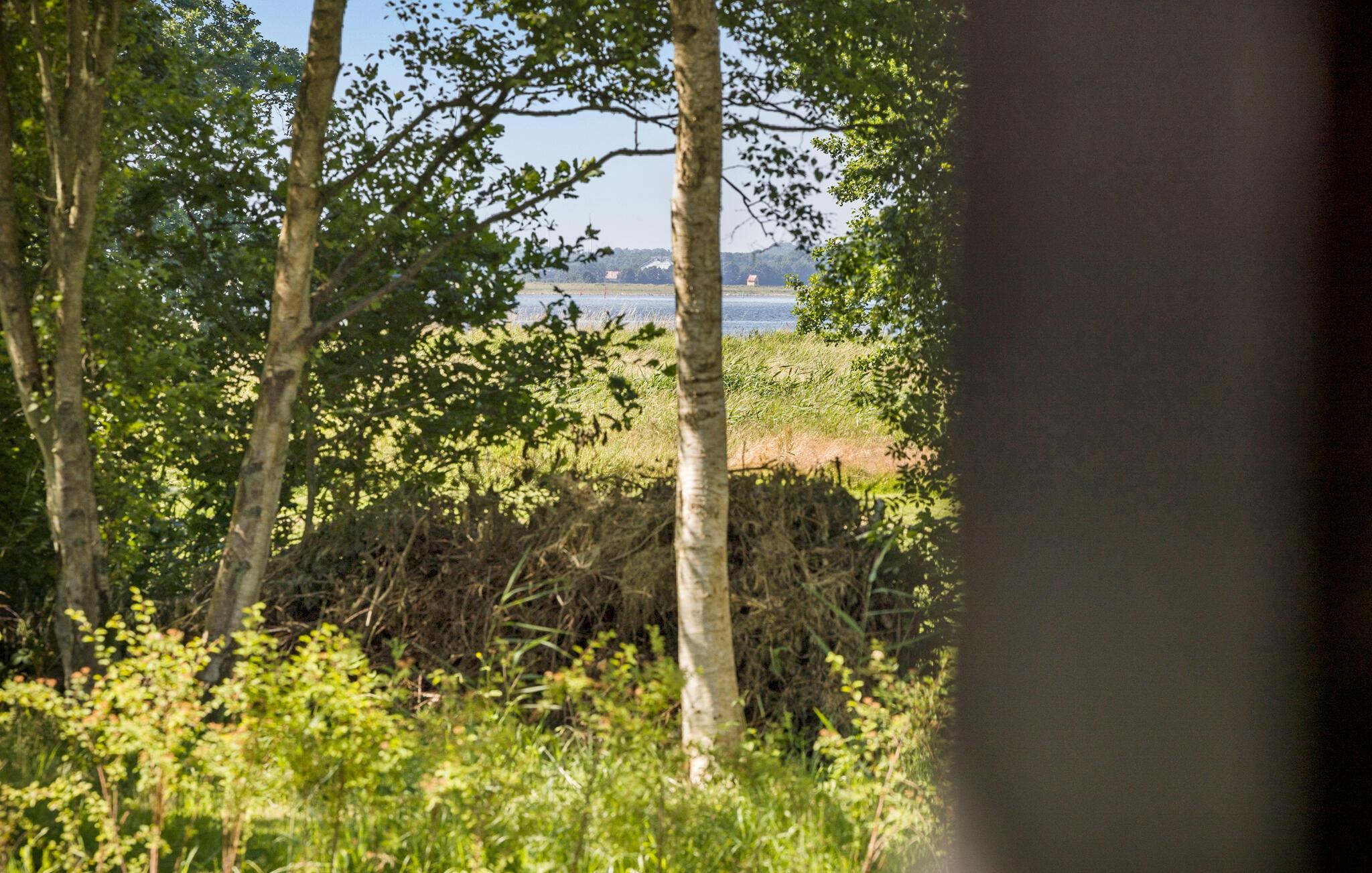 Moderne sommerhus nær Helberskov Strand med sauna, vildmarksbad og delvis udsigt til Mariager Fjord.