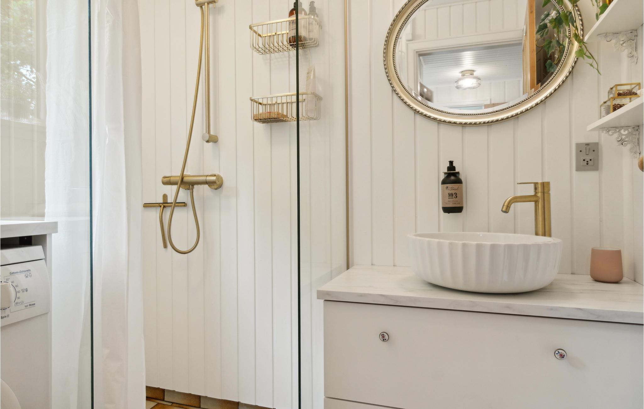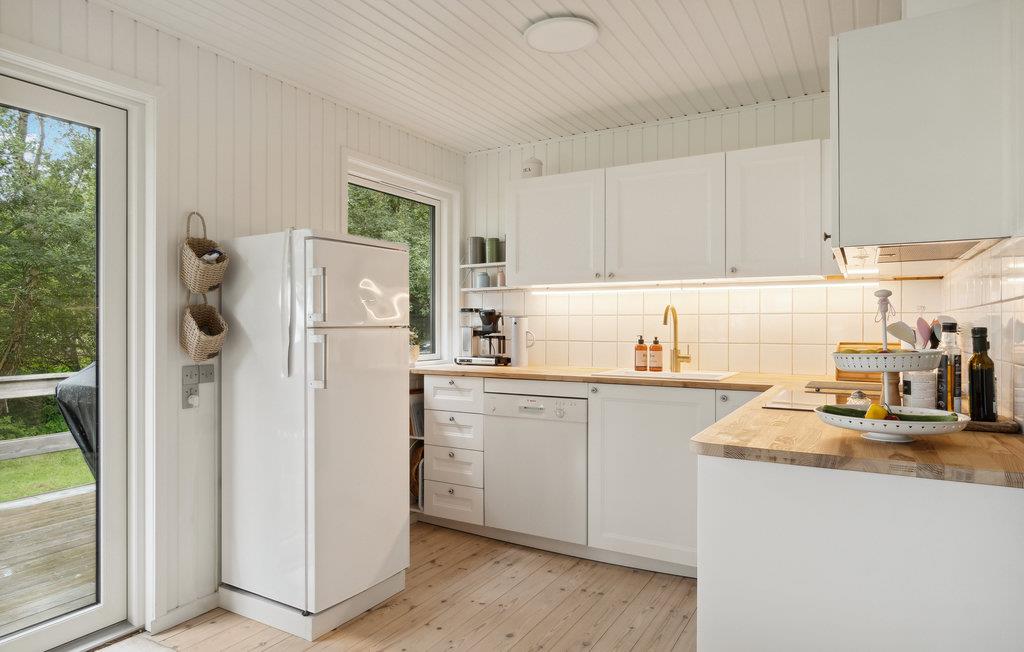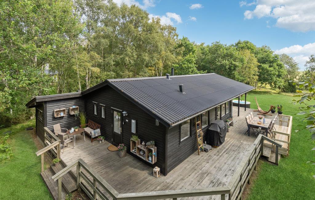 På solrige dage vil I helt sikkert tilbringe det meste af tiden ude på terrassen, mens børnene leger på græsplænen. Afslut senere en dejlig dag med snobrødsbagning ved bålstedet eller i vildmarksbadet, hvorfra I kan lade blikket glide henover vandet og solnedgangen.