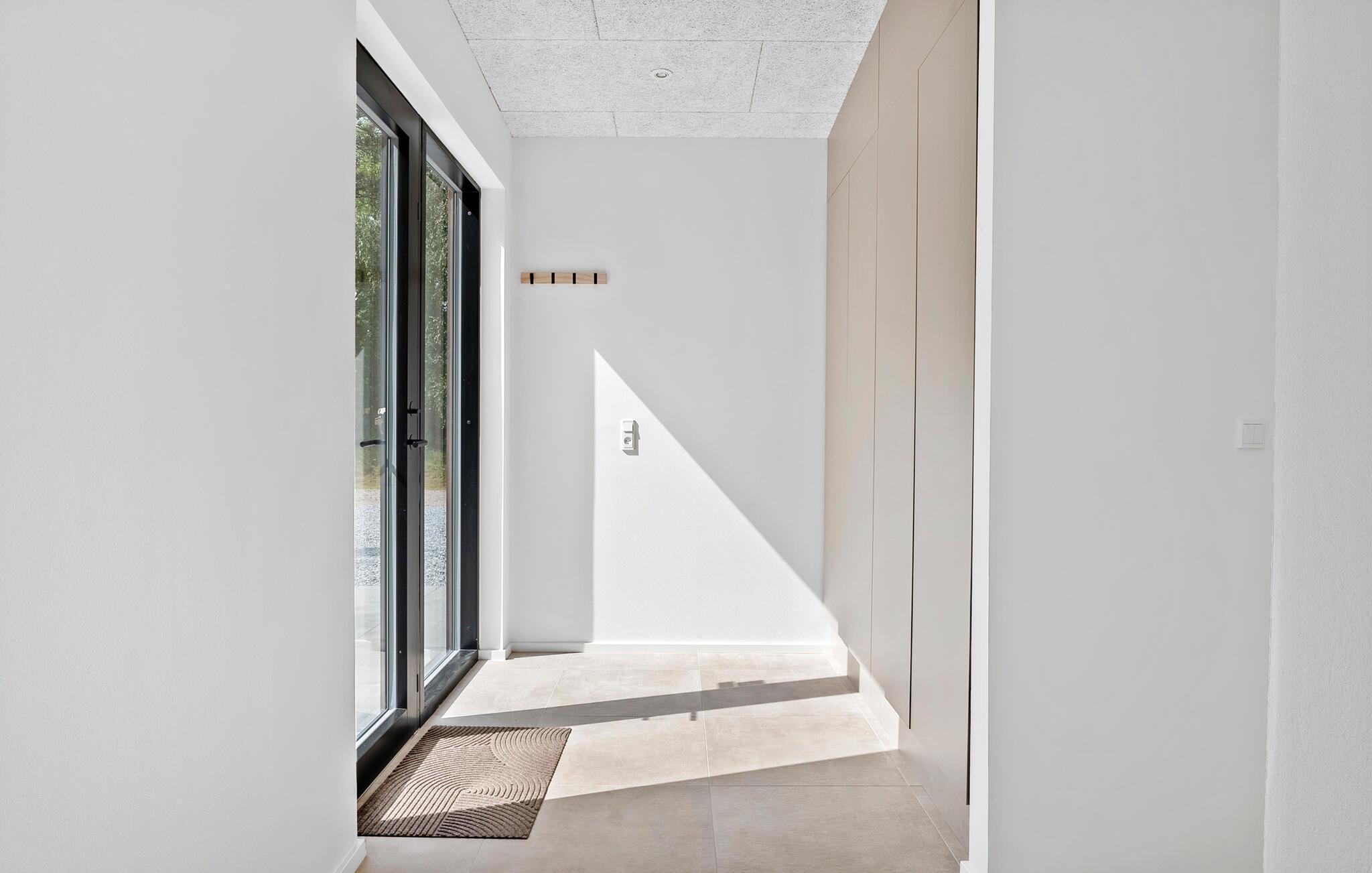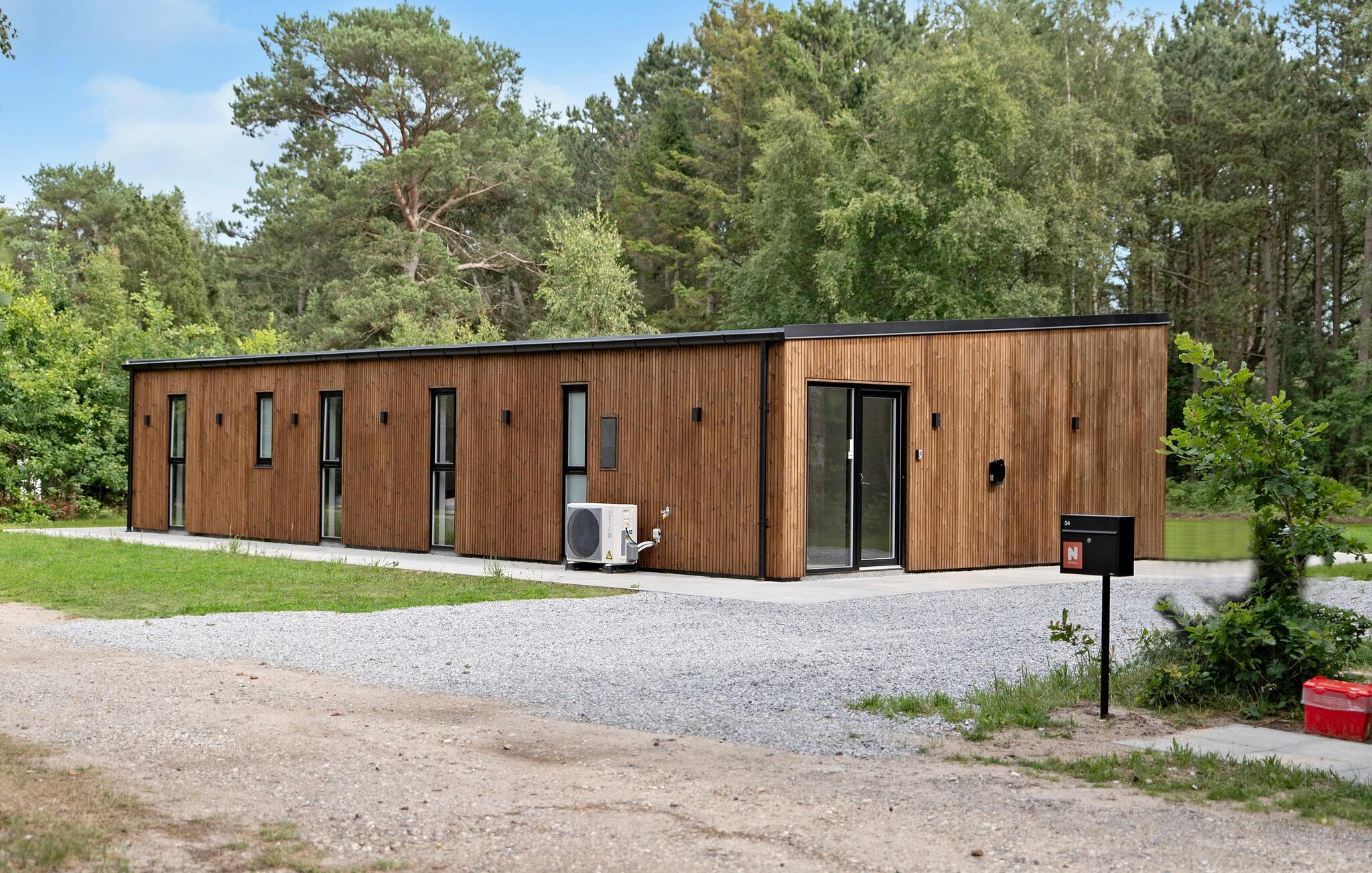 Nyd et moderne feriehus med spabad, store vinduer og fredelig natur tæt på stranden i Helberskov.