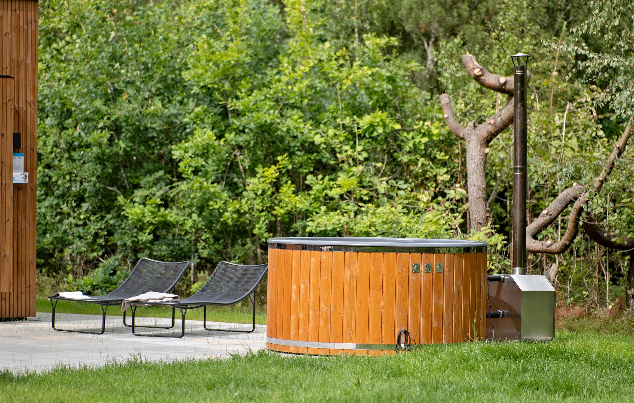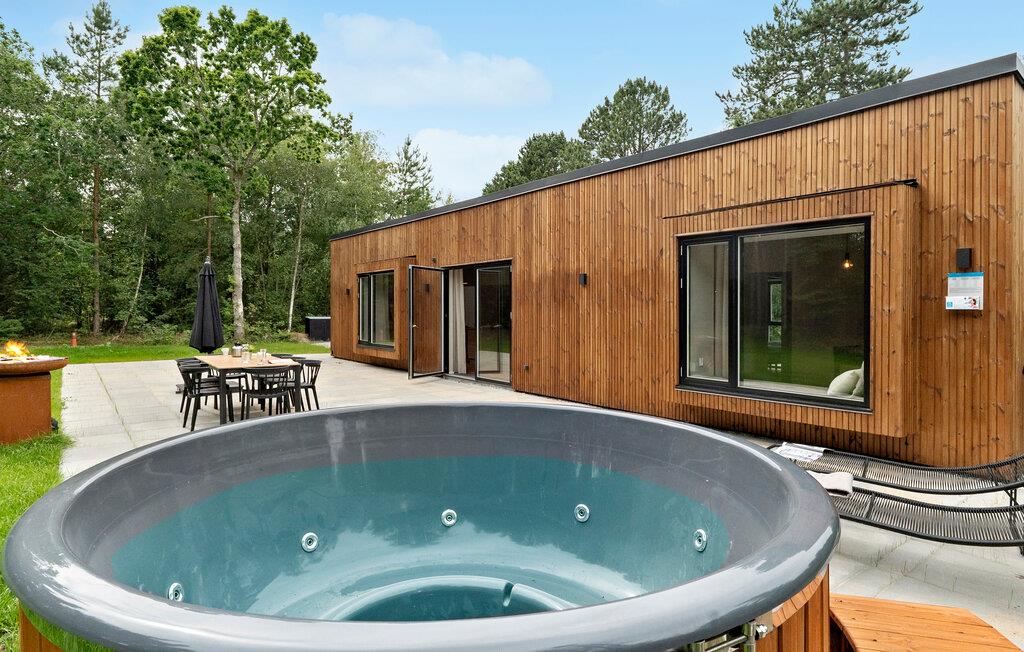 Tilbring en drømmeferie i dette stilfulde feriehus med spabad.