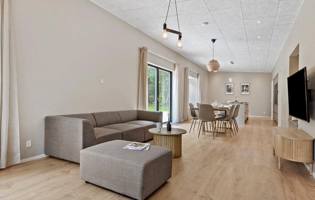Dette skønne hus er noget særligt med sin moderne stil, der kombinerer elegance, varme og rummelighed. Store vinduer lukker masser af naturligt lys ind, mens et varmt trælook og elegante møbler skaber en behagelig atmosfære. Tilbered lækre måltider i det moderne køkken og nyd dem ved det lange spisebord med udsigt over den omkringliggende natur.