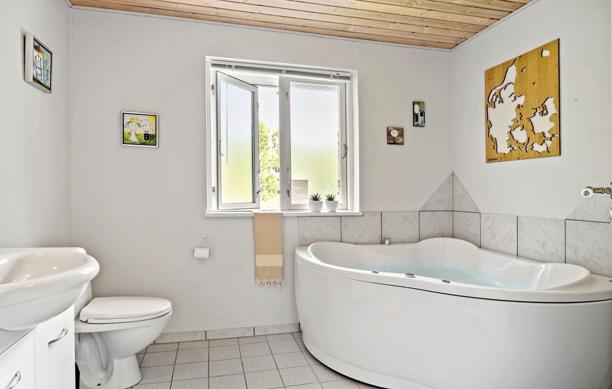 Tag familien under armen og rejs til Helberskov, hvor I tæt på Kattegat og Mariager Fjord finder denne hyggelige perle af en feriebolig. Huset er nydeligt indrettet med velholdte træpaneler, varme farveskalaer og dejlige lysindfald fra flere sider gennem vinduerne, der samtidig giver en fin udsigt til omgivelserne. Skulle vejret bide lidt fra sig, kan I fyre op i brændeovnen og nyde dens knitrende varme til en hyggelig aften med god mad og brætspil eller en god film til sent. Og måske I skal forkæle jer selv med lidt aften-wellness i spabadet?
