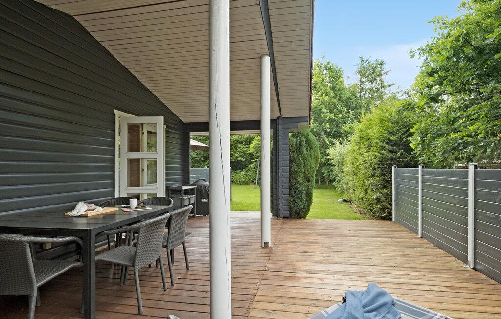 På den delvist overdækkede terrasse kan I nyde den friske luft og lade blikkene vandre ud over den velholdte have, hvor børnene kan løbe rundt og brænde lidt energi af, inden I tager på tur.