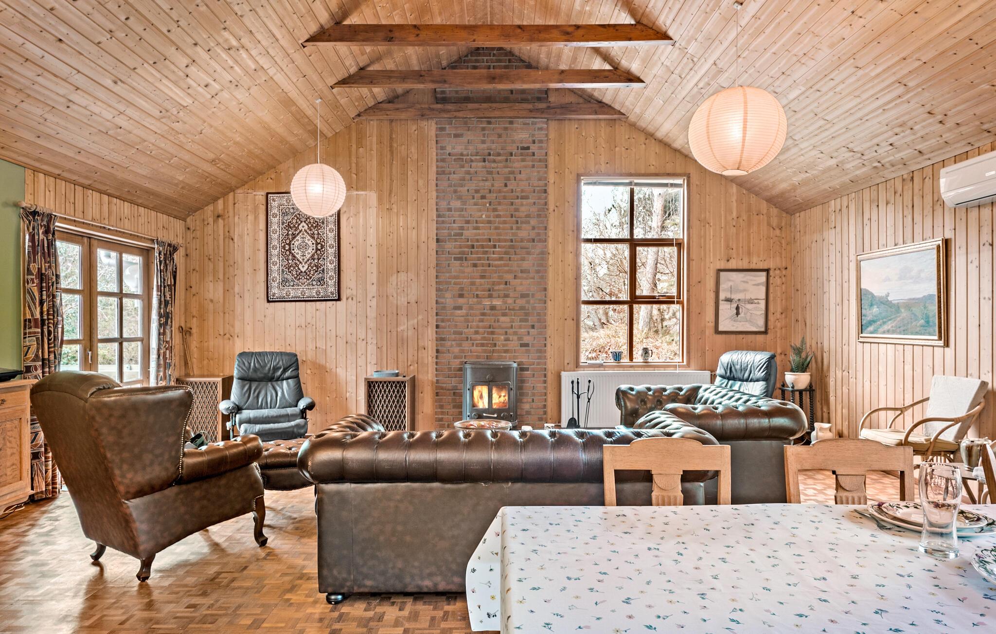 På en stor skovgrund i Helberskov ligger dette hus, som danner en god ramme om den store familieferie eller turen med jeres gode venner. Træd ind i det charmerende hus og lad jer fortrylle af det varme trædesign og det indbydende interiør. Den rummelige opholdsstue med synlige loftsbjælker, rustikke sofaer og brændeovn lægger op til at tilbringe afslappende timer. Nyd aftenen sammen ved det lange spisebord eller afslut dagen med et glas vin i en venlig atmosfære. Lav mad sammen i det åbne køkken, mens andre spiller musik i opholdsstuen. Eller brug sportsudstyret, så jeres kondition ikke bliver forsømt på ferien.