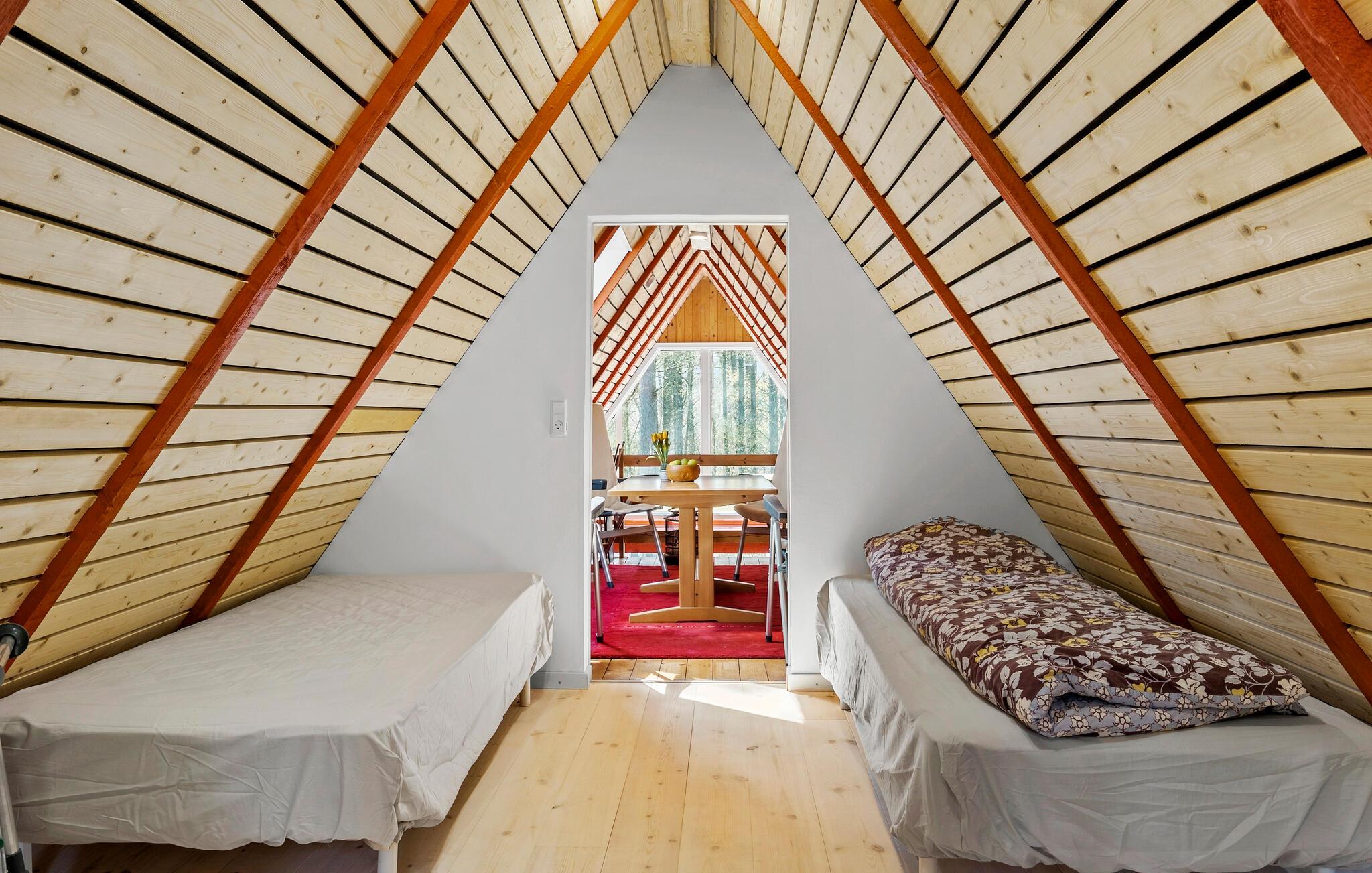 Hyggeligt A-hus i skov nær strand