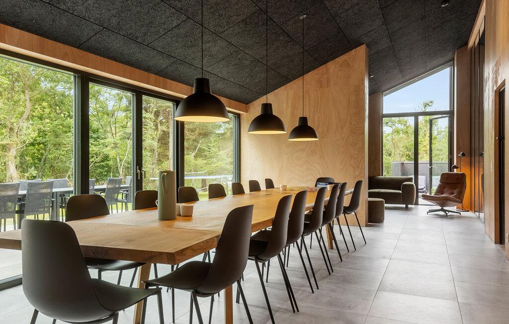 Dette eksklusive feriehus er noget særligt med sit moderne design, der kombinerer tidløs elegance med varme og rummelighed. Gulv til loft-vinduerne bader rummene i lys og gør det ekstra nemt at slappe af her. Hop en tur i indendørspoolen eller snup et spil vandpolo med børnene. I det eksklusive designerkøkken kan I give jer i kast med lækre ferieretter og nyde dem ved det store spisebord med fantastisk udsigt over den grønne have.