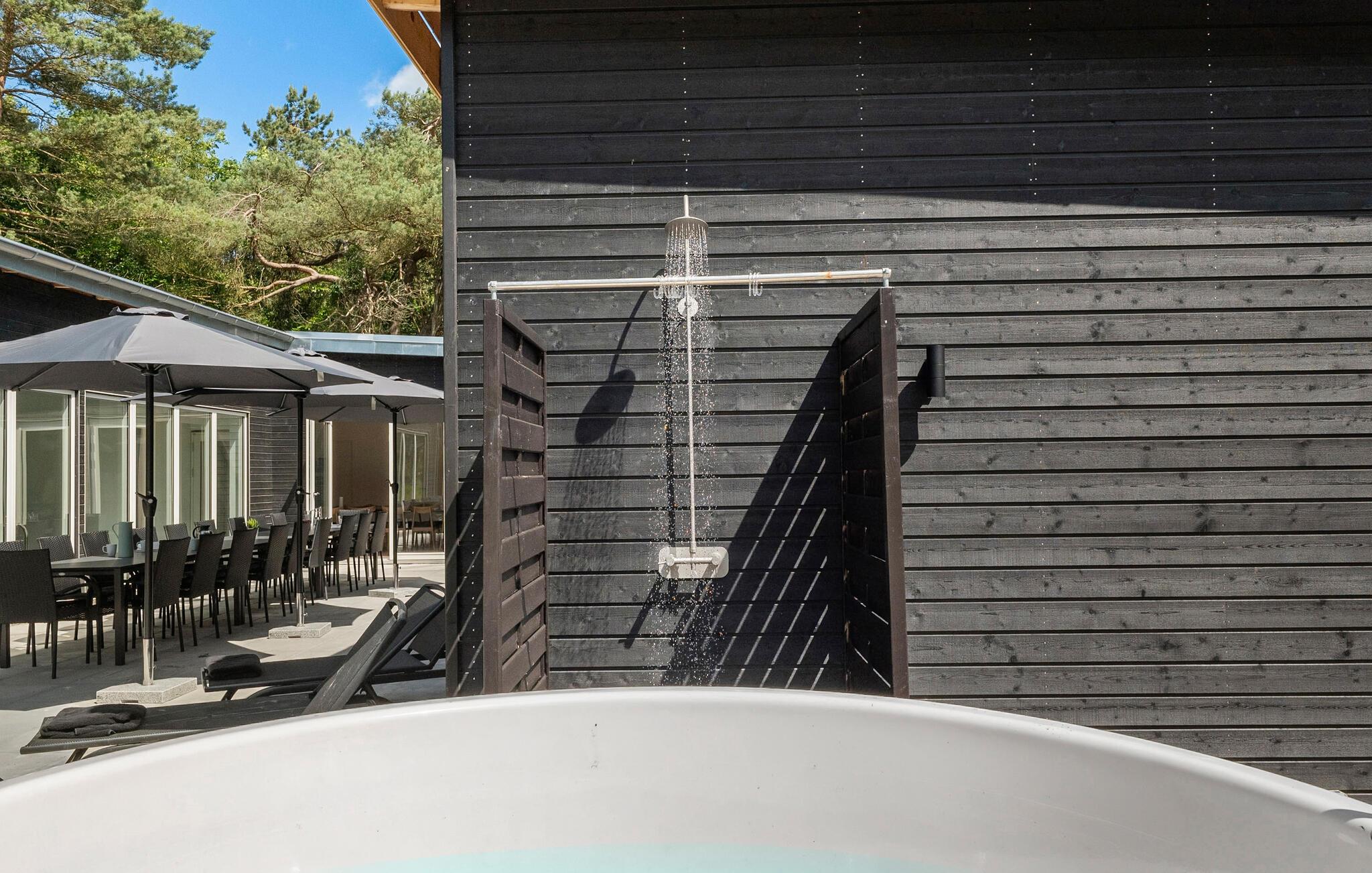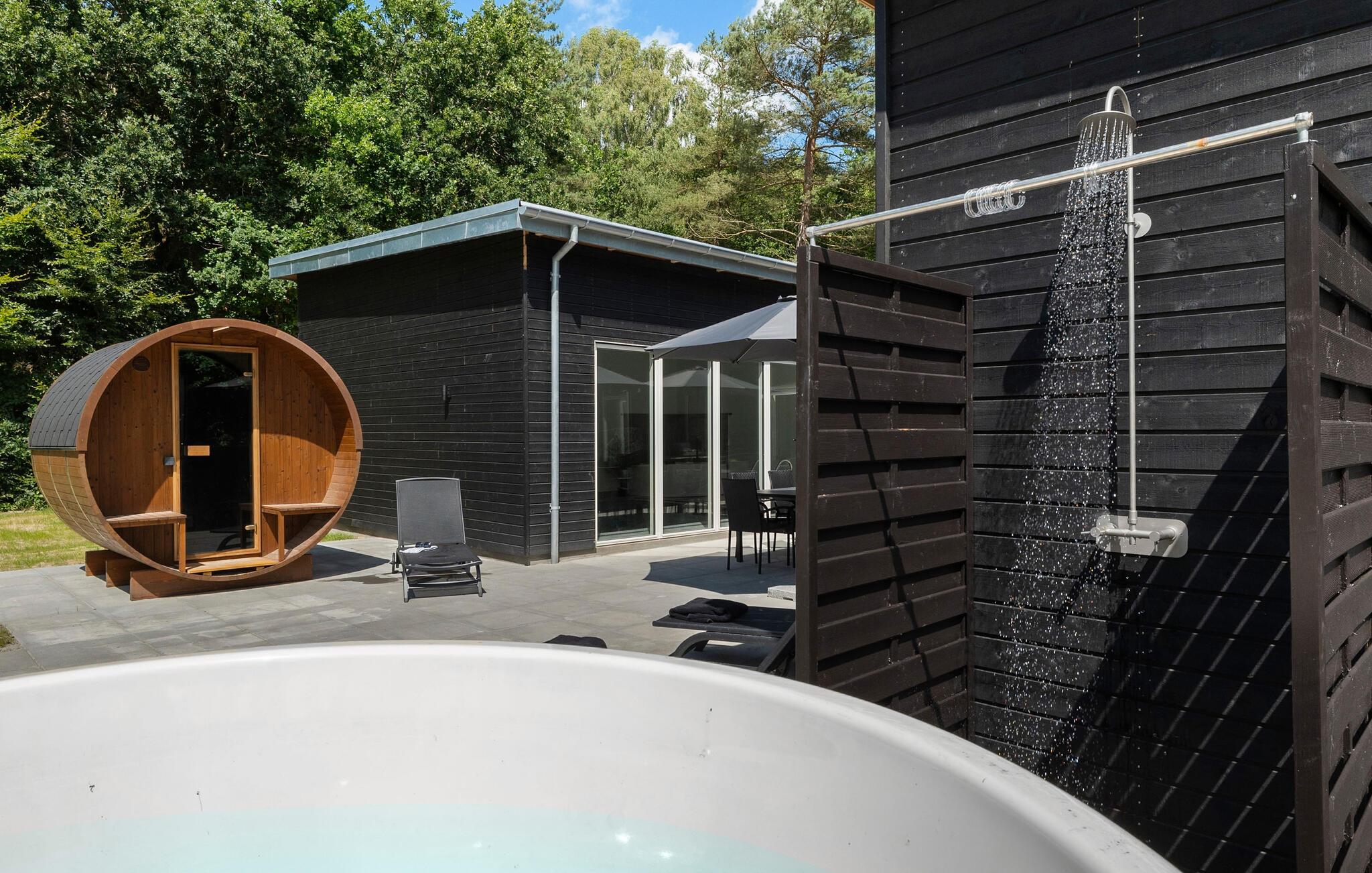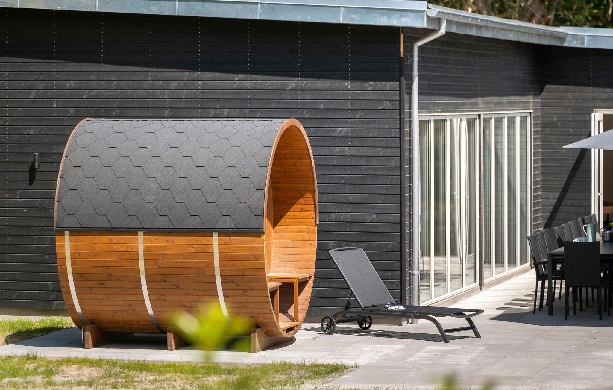 Start dagen med morgenmad på terrassen i godt vejr, og indånd den friske havluft. Slap af på liggestolene med en god bog og solbadning. På køligere dage sørger spabadet eller et besøg i vildmarksbadet for beroligende varme og afslapning. Om aftenen kan I tænde op i grillen og slutte dagen behageligt af under aftenhimlen.