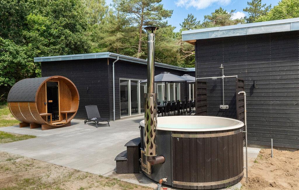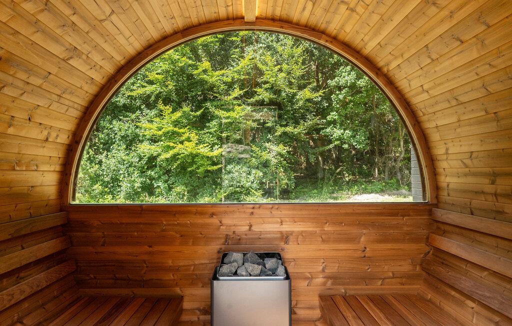 Hold jeres ferie i dette idyllisk beliggende feriehus med indendørspool og vildmarksbad nær havet.