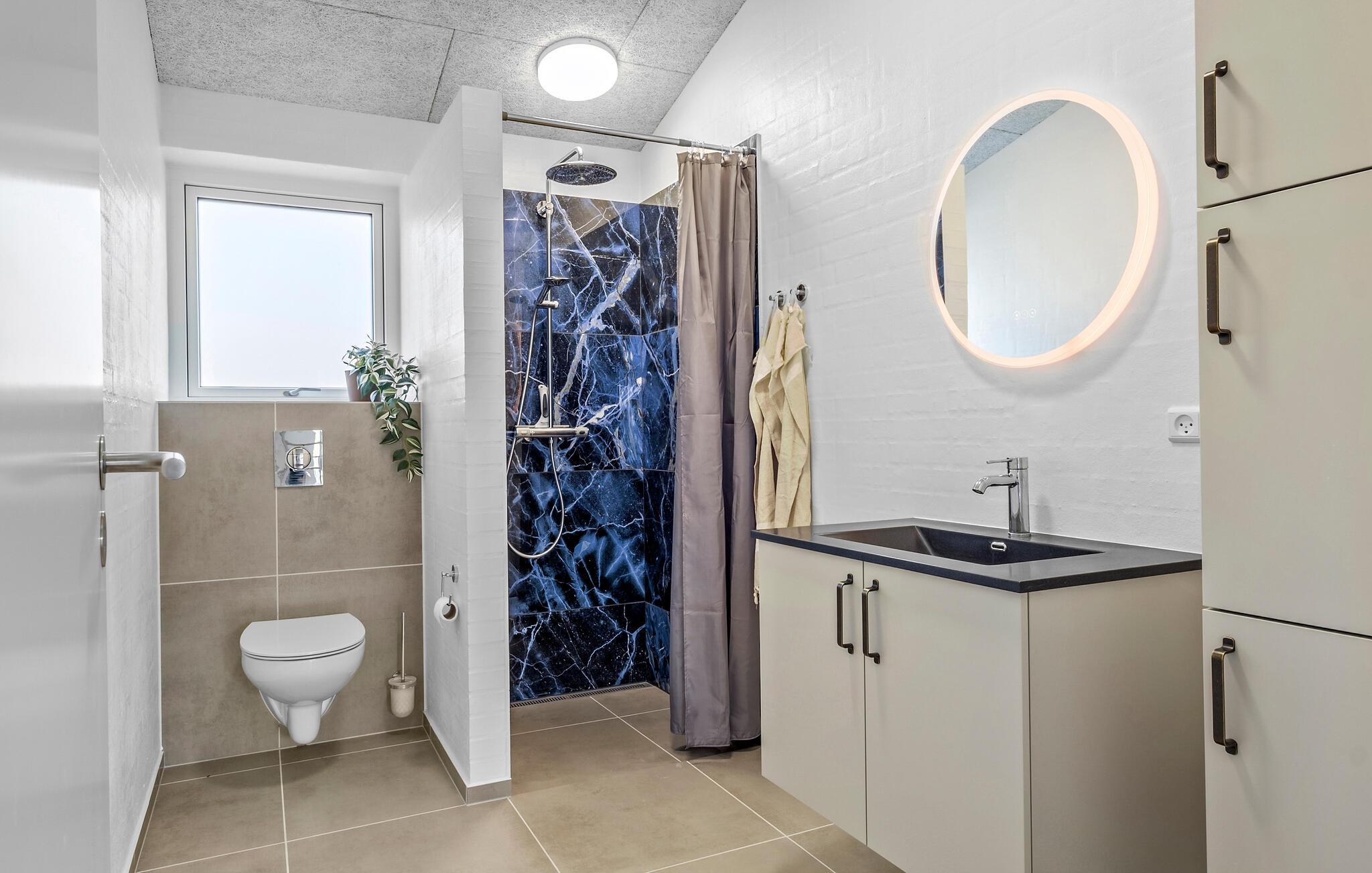 I dette moderne sommerhus har I plads til den store familie eller vennegruppen. I kan starte dagen med at lave lækker morgenmad i det åbne køkken til hele holdet, og nyde det om det lange spisebord. I forlængelse af køkkenet kan I slappe af i hyggekrogen med film eller et afsnit af jeres yndlingsserie.