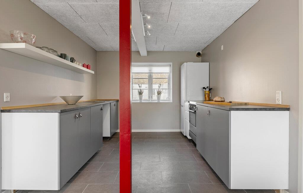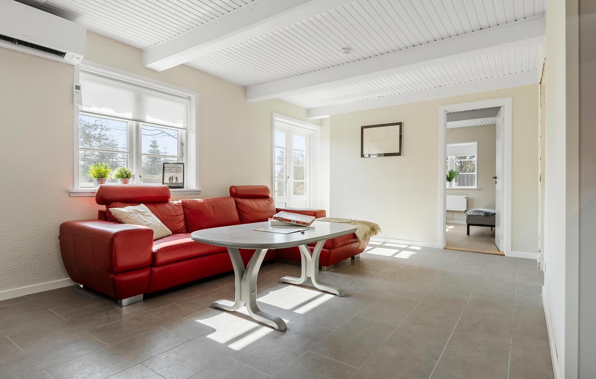 Dette sommerhus ligger med lys, venlig indretning og en hyggelig atmosfære. Slap af på sofaen i opholdsstuen eller nyd hyggelige måltider i den tilstødende spiseplads. Lav maden sammen i det praktiske køkken med masser af arbejdsplads og naturligt lys. I vinterhalvåret egner huset sig godt til indendørshygge.
