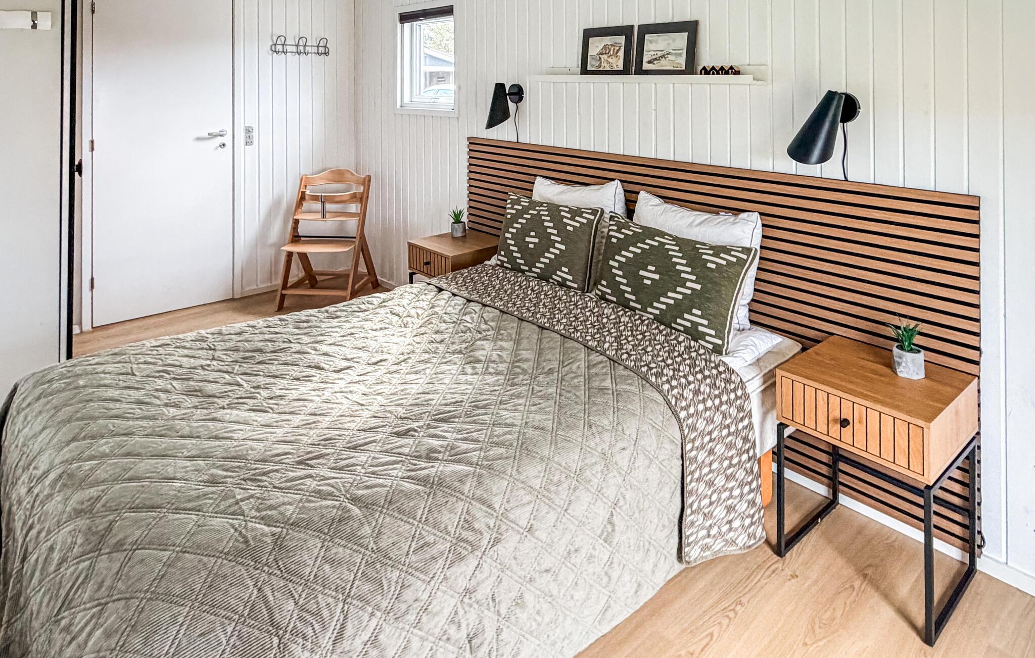 Køkken/stueområdet er lyst og venligt indrettet med pæne møbler og veludstyret med blandt andet vinkøleskab. Gode soveværelser med komfortable senge. Udendørs er der store terrasser med flotte havemøbler. Græsplænen giver gode muligheder for leg. I området er der rig mulighed for fiskeri og strandture, og I kan opleve mange gamle gårde og gadekær. Der er er heller ikke langt til Øster Hurup, hvor I kan købe friske fisk direkte fra bådene i den lille havn eller se alle de boder der er i byen.