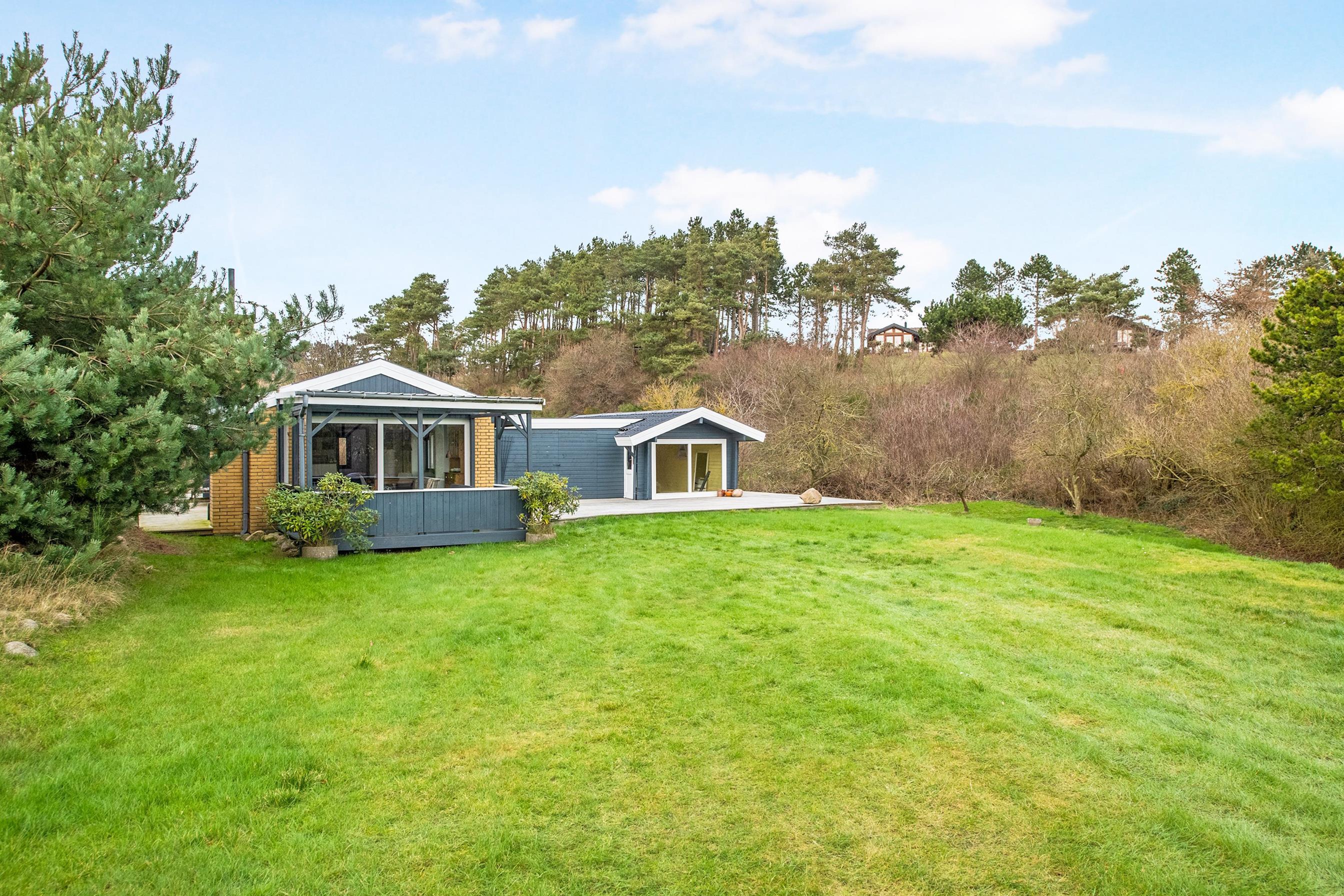 Ældre, velholdt og charmerende bjælkehus beliggende på det sydvestlige Helgenæs på stor, ugenert naturgrund omkranset af træer og ca. 500 meter fra stranden. Huset er omgivet af stor træterrasse med en skøn, overdækket udestue. Her er masser af sol- og lækroge, havemøbler, liggestole, parasol og grill. En herlig naturoase, hvor man både kan slappe af og dyrke udendørs aktiviteter.