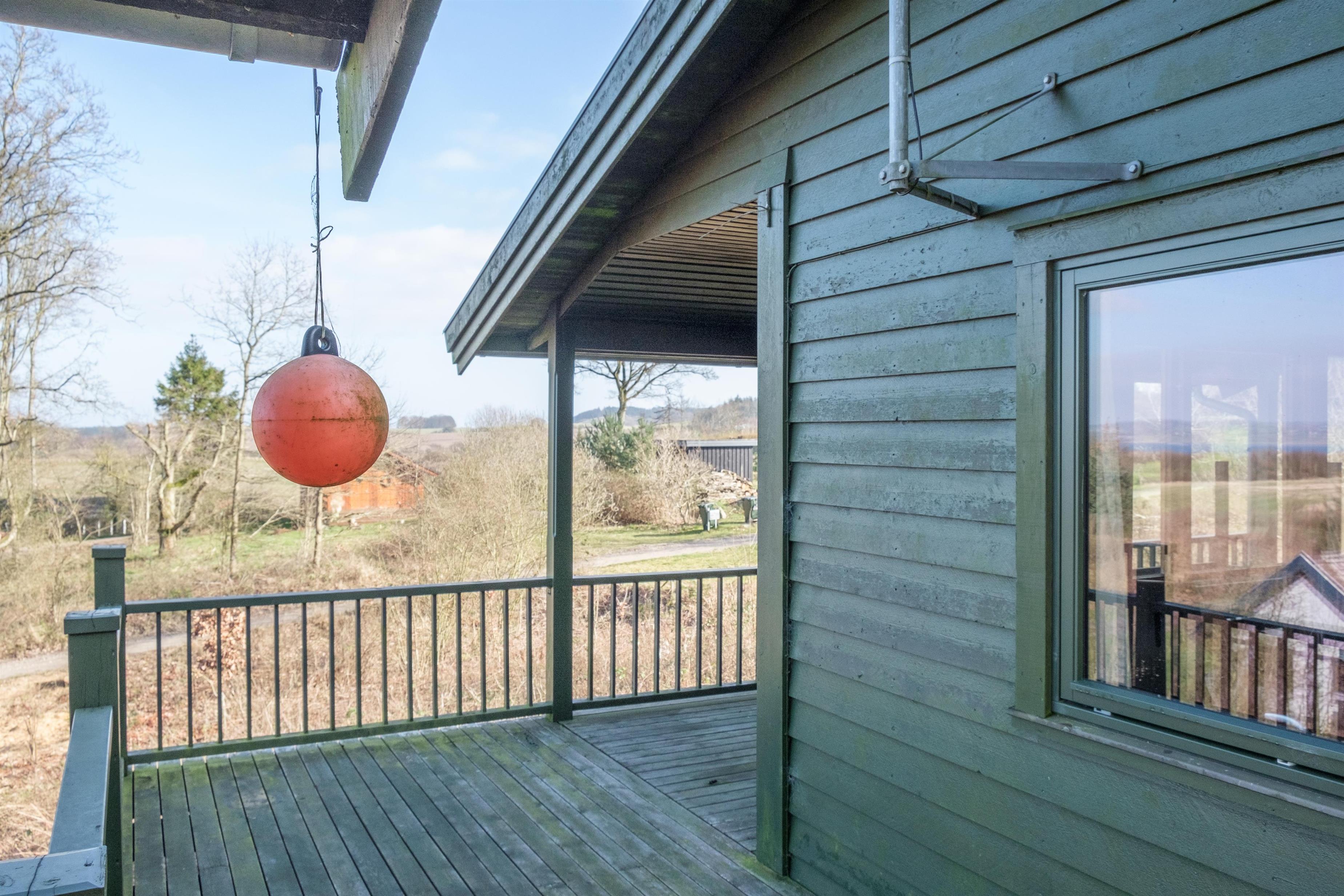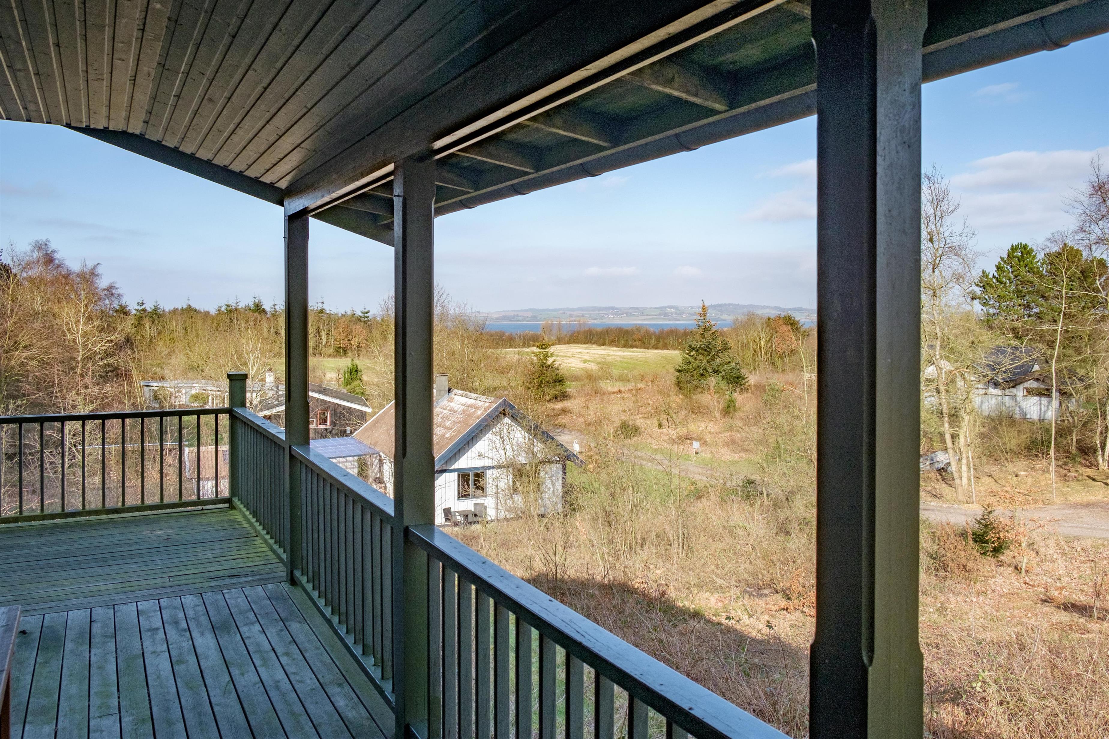 Højt beliggende ved Fejrup Strand på det nordvestlige Helgenæs og med skøn udsigt over Begtrup Vig finder man dette ældre, traditionelle feriehus med hygge og atmosfære. Både hovedhus og anneks har eget badeværelse og er forbundet via en dejlig træterrasse med havemøbler, liggestole og parasol. Der er fine opholdsarealer og lækroge omkring husene, på den store grund er der opstillet trampolin, og desuden er der aflåseligt udhus med diverse spil og legeredskaber. Et godt valg for den store eller to familier.
