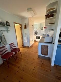 Hovedhuset rummer stor, lys stue med havudsigt, spiseplads til 8 personer, sofamøblement og lænestole, brændeovn, TV med danske (kun gratis) kanaler samt radio. I halvåben forbindelse med stuen er der praktisk og velindrettet køkken med komfur med keramiske kogeplader og ovn, køle-/fryseskab, opvaskemaskine, vaskemaskine og mikrobølgeovn. To lyse soveværelser, med 2 enkelt senge i hver. Pænt, ældre flisebadeværelse med bruseniche og gulvvarme. Annekset har lille stue med havudsigt, TV med danske (kun gratis), samt et lille thekøkken i entréen. Nyere flisebadeværelse med gulvvarme og bruseniche. Desuden er her 1 værelse med dobbeltseng og 1 værelse med 2 enkeltsenge, hvilket er sammenlagt med hovedhuset giver 8 sovepladser. Der er varmepumpe i begge huse. Internetadgang.