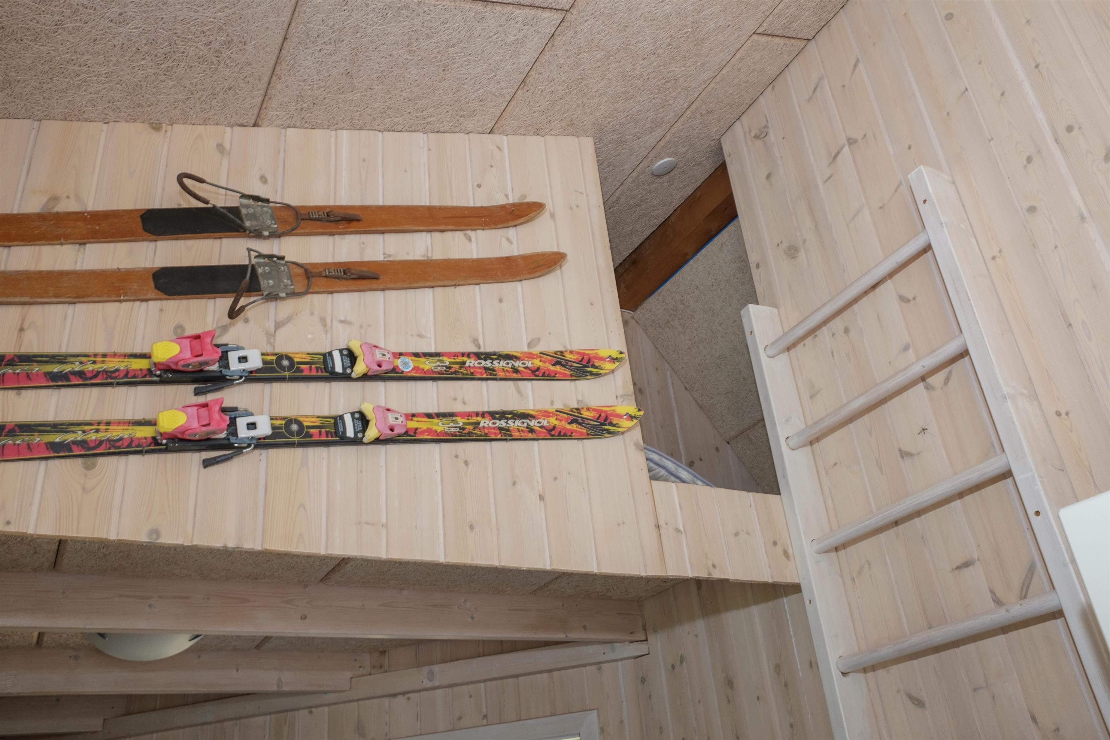 I husets øverste plan ligger den lyse og moderne møblerede stue med skøn udsigt og udgang til hævet træterrasse. Her er brændeovn og TV med danske (inkl. TV2) og tyske kanaler. Spiseafdeling til 6 personer i åben forbindelse med stort, dejligt køkken med keramisk komfur med ovn, køle-/fryseskab, opvaskemaskine og mikrobølgeovn. I husets underste plan finder man stort, godt badeværelse med bruseniche og indgang til sauna. Desuden 3 dejlige soveværelser, 2 med dobbeltseng og udgang til terrasse samt 1 værelse med 2 enkeltsenge, i alt 6 sovepladser. På husets øverste plan desuden lys hems med 1 enkeltseng. Gæstebadeværelse med pusleplads. Barnestol og barneseng forefindes. Internetadgang.