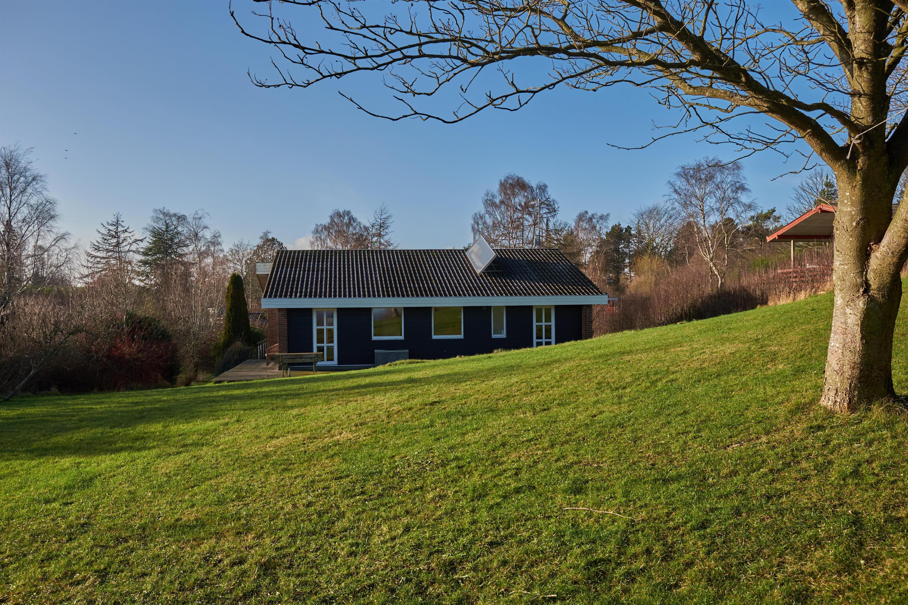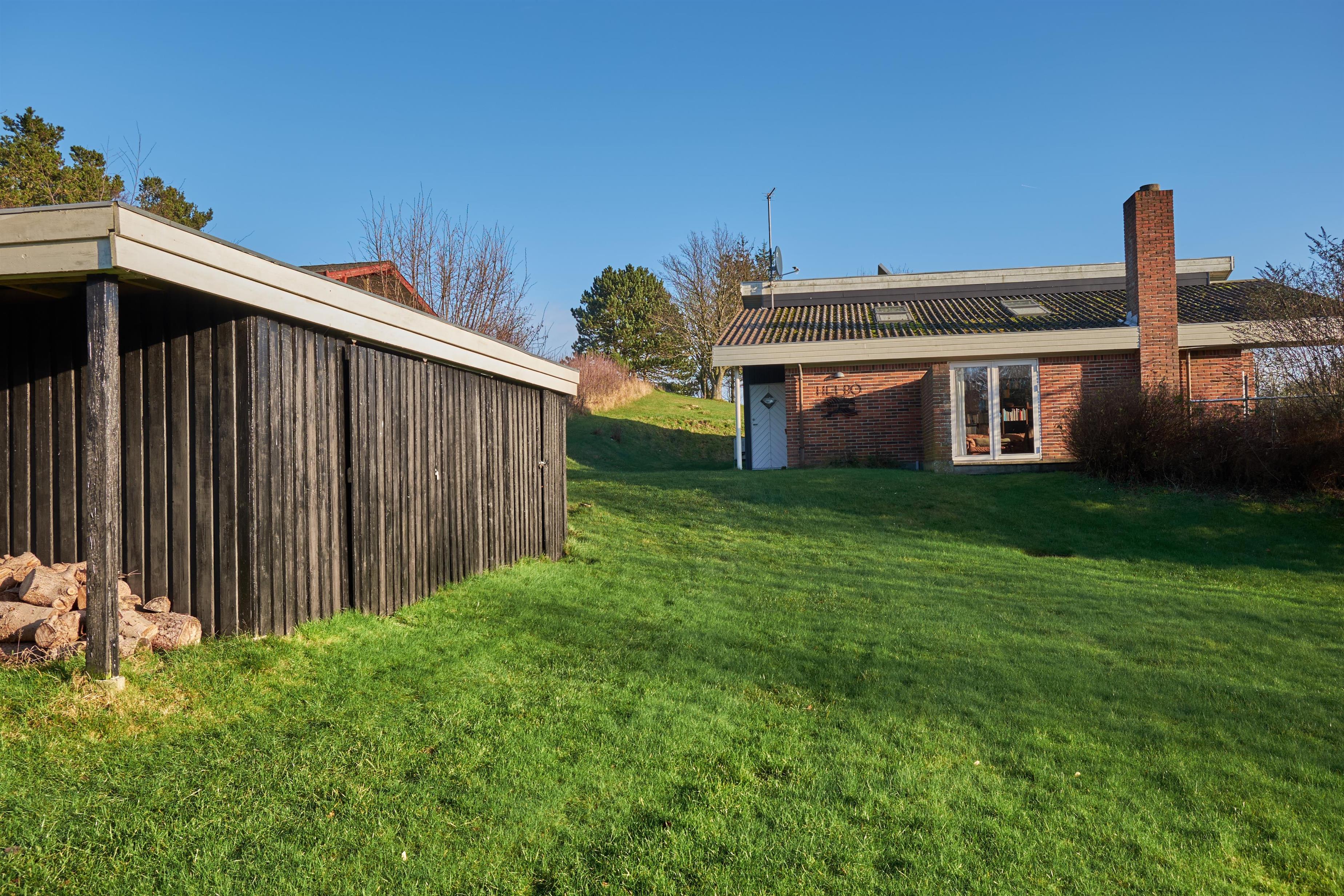 Well-maintained, spacious, and continuously modernized holiday home, located high up in the center of Helgenæs on a very large and sunny plot. The house features both an east- and west-facing terrace, partly covered, with garden furniture, loungers, a parasol, and a grill. It is a bright, inviting, and well-equipped house, which also has a carport.