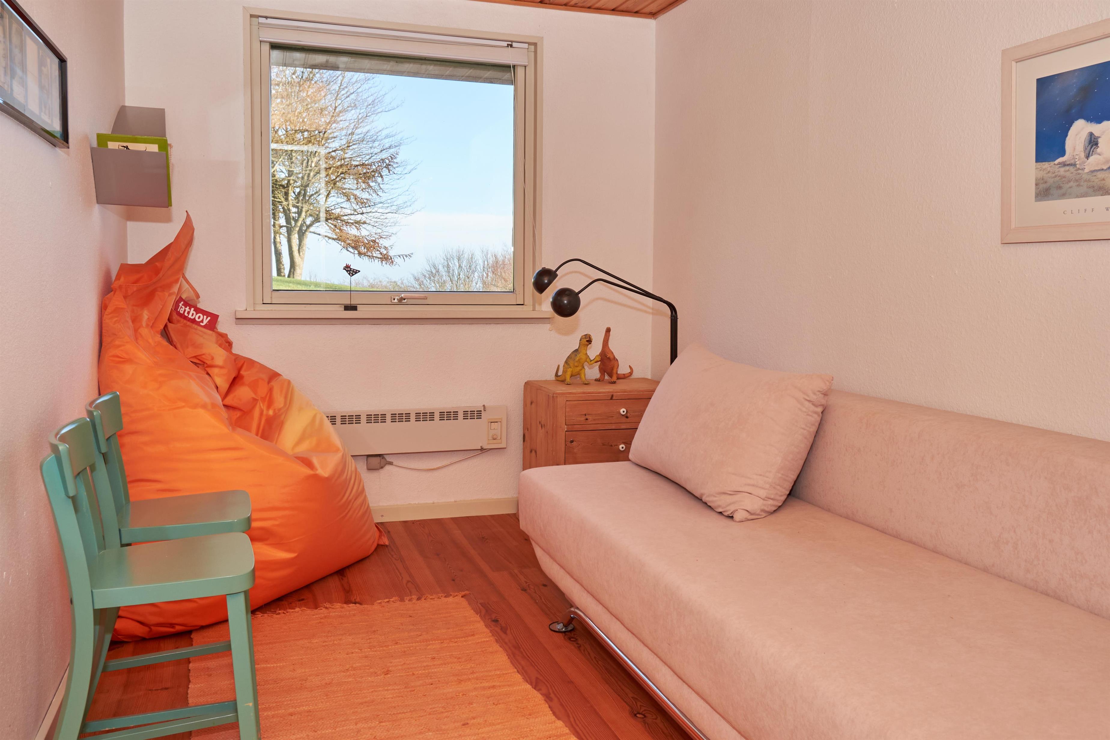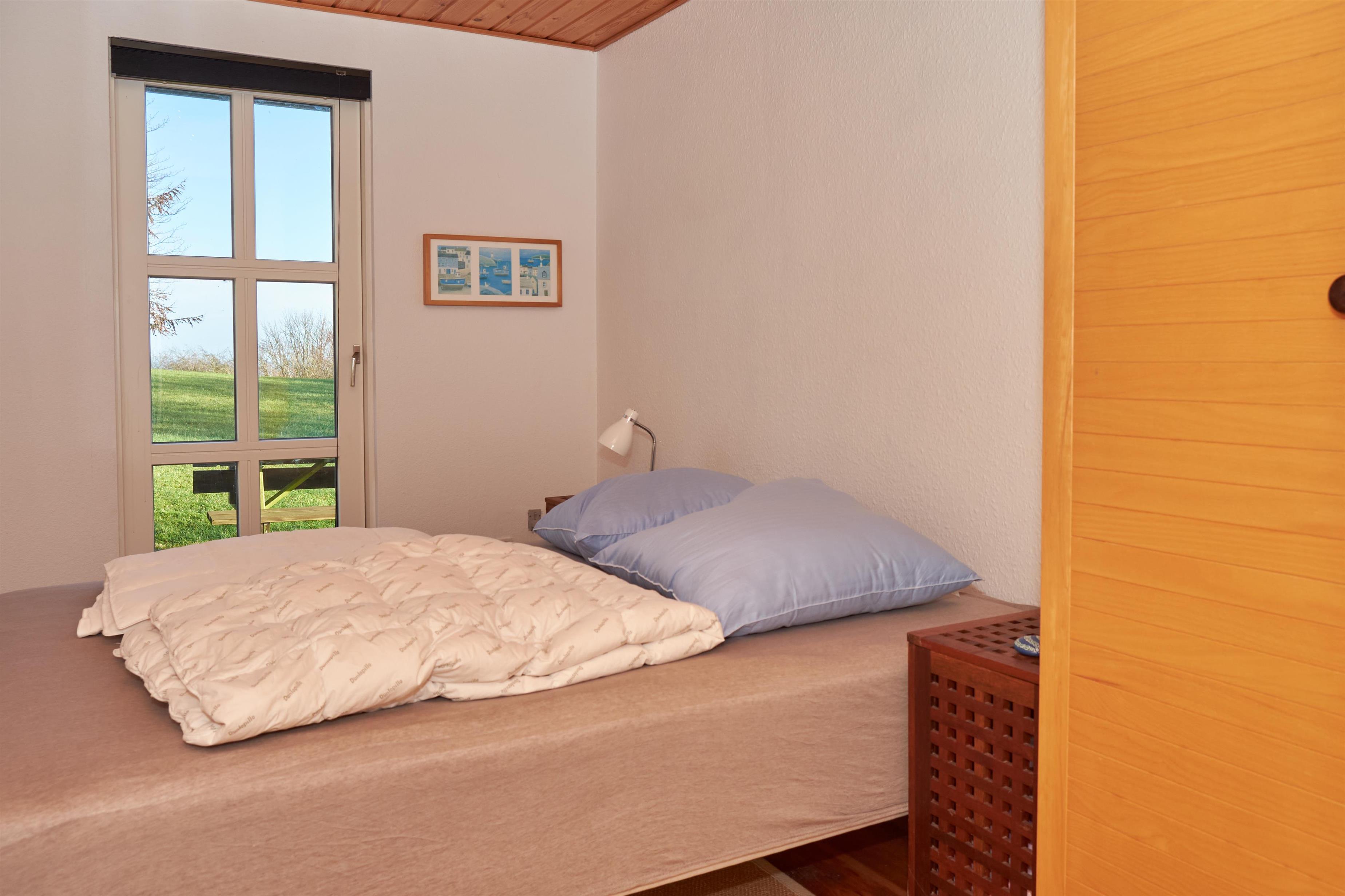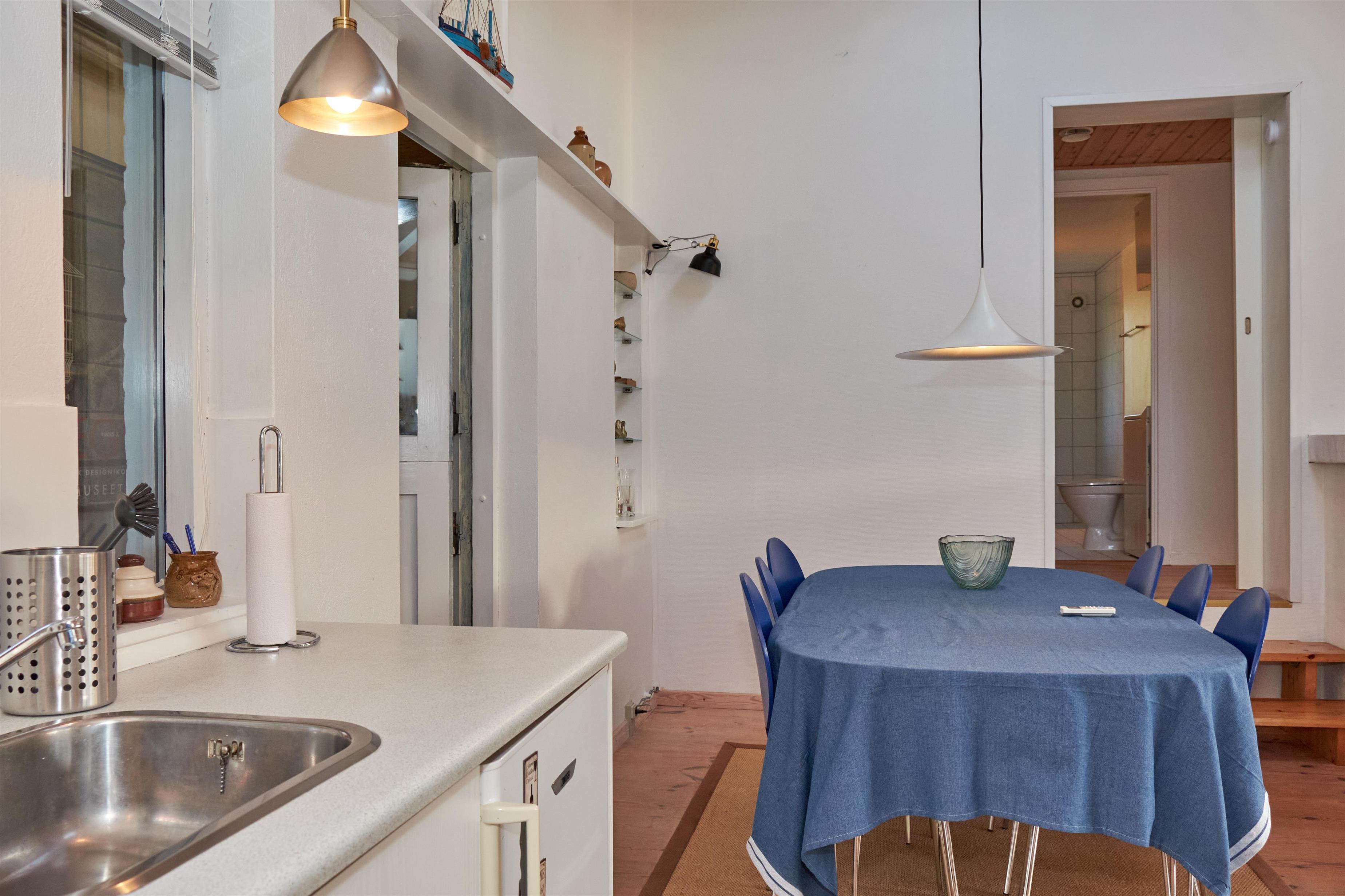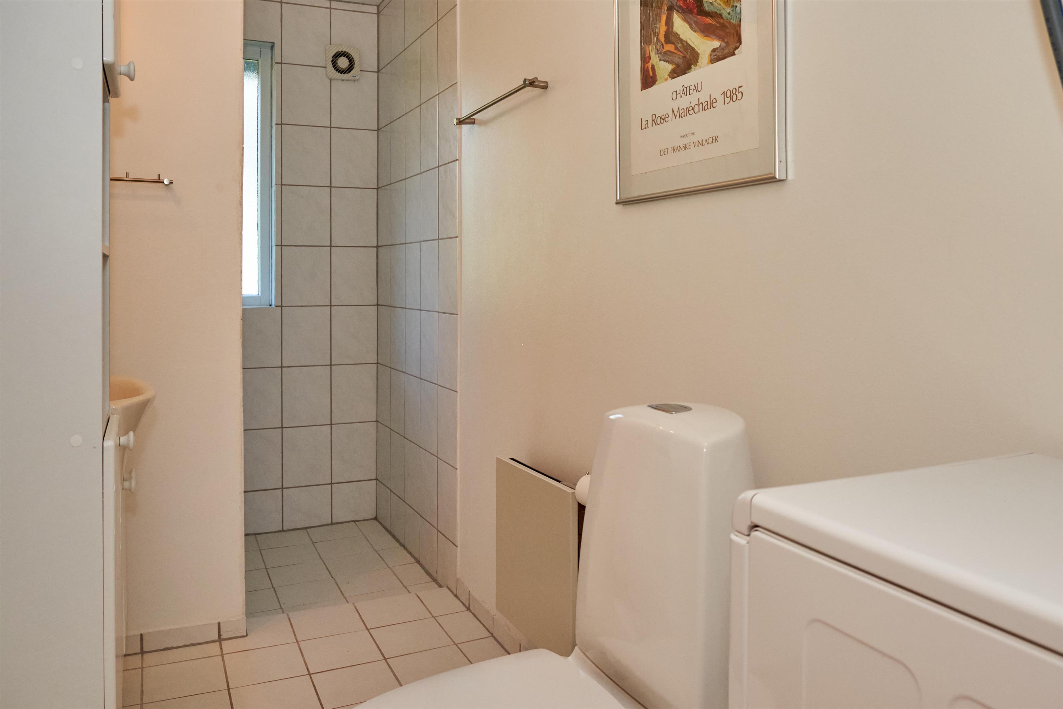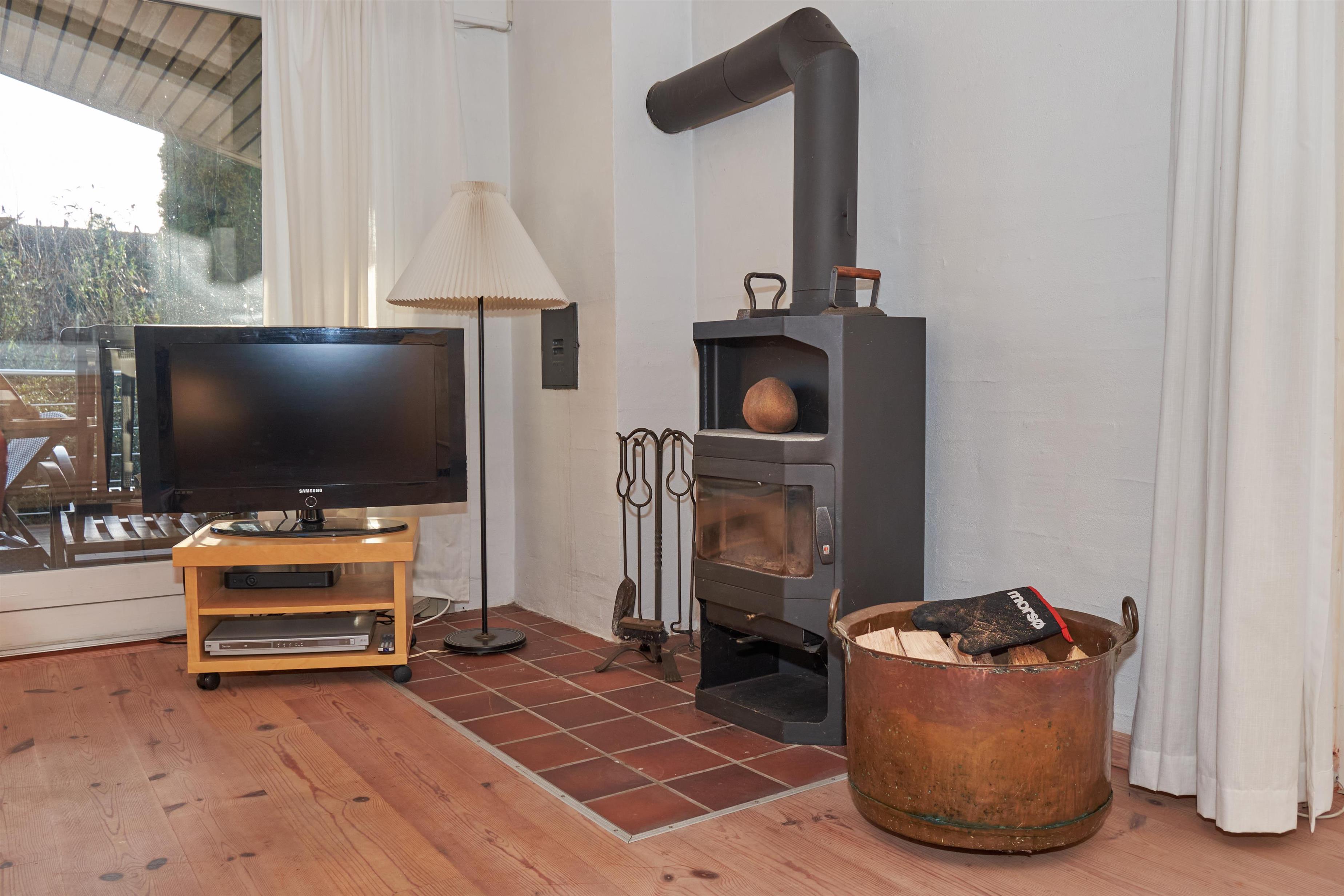 The cozy living room is open to the kitchen and has vaulted ceilings, a wood stove, a dining area for 8, a spacious sofa seating area with armchairs, and a TV with Danish (including TV2) and German channels. The well-equipped kitchen includes a stove with ceramic cooktops and an oven, a refrigerator with a small freezer compartment, a dishwasher, and a microwave. The 8 sleeping spaces are distributed across 1 large, lovely bedroom, and 1 slightly smaller bedroom, both with comfortable double beds and access to the terrace, 1 smaller room with 2 good single beds, and 1 room with a double sofa bed. A neat and functional bathroom with a tiled shower cubicle, underfloor heating, and a washing machine. The house is electrically heated and has an energy-efficient heat pump. Internet access is available.
