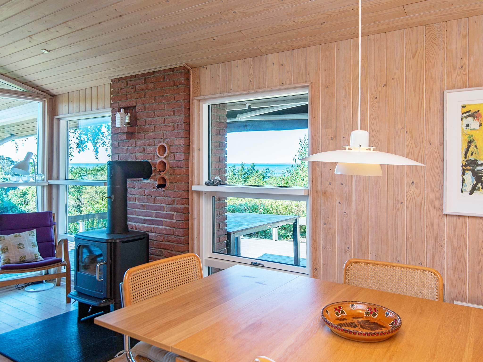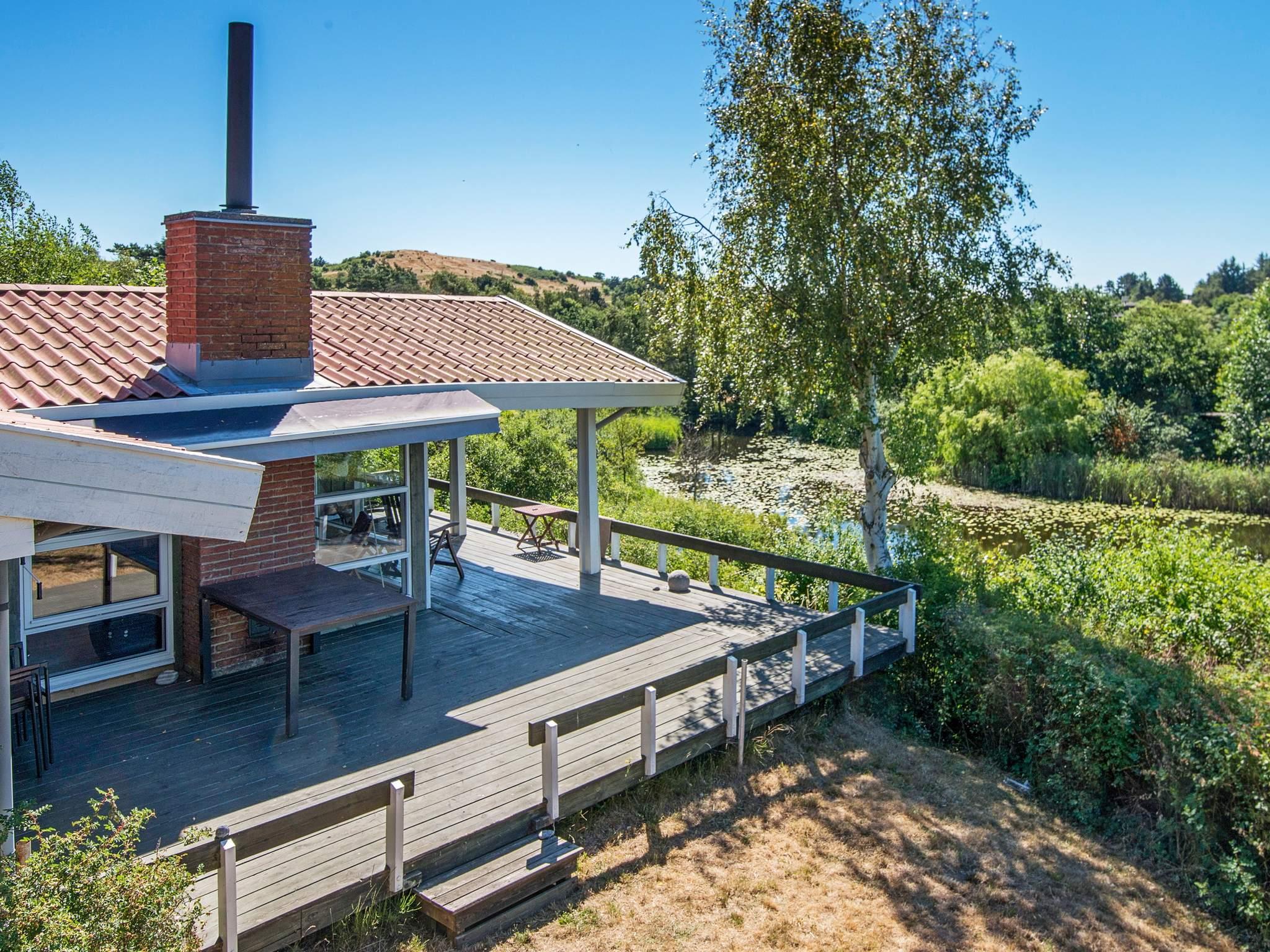 Højtbeliggende, lyst indrettet sommerhus. Hele husets ene side vender med stuen ud mod en sø og beplantningen langs danner en helt speciel udsigt. Til højre for huset har I fuld udsigt til Kattegat fra terrassen, som også er overdækket. Herfra kan I følge med i færge- og skibsfarten. Køkkenet ligger i åben forbindelse med stuen, så alle kan deltage i hyggen lige meget om det drejer sig om maden eller om spil og snak. Der er 3 værelser samt et anneks, som ligger nedenfor huset og ikke langt fra søen på grunden. Herfra kan I følge med i færge- og skibsfarten. På terrassen kan der også laves mad på grillen, så her er alle rammerne for en herlig ferie i fred, ro og hygge med familien/vennerne. Udlejes ikke til ungdomsgrupper.