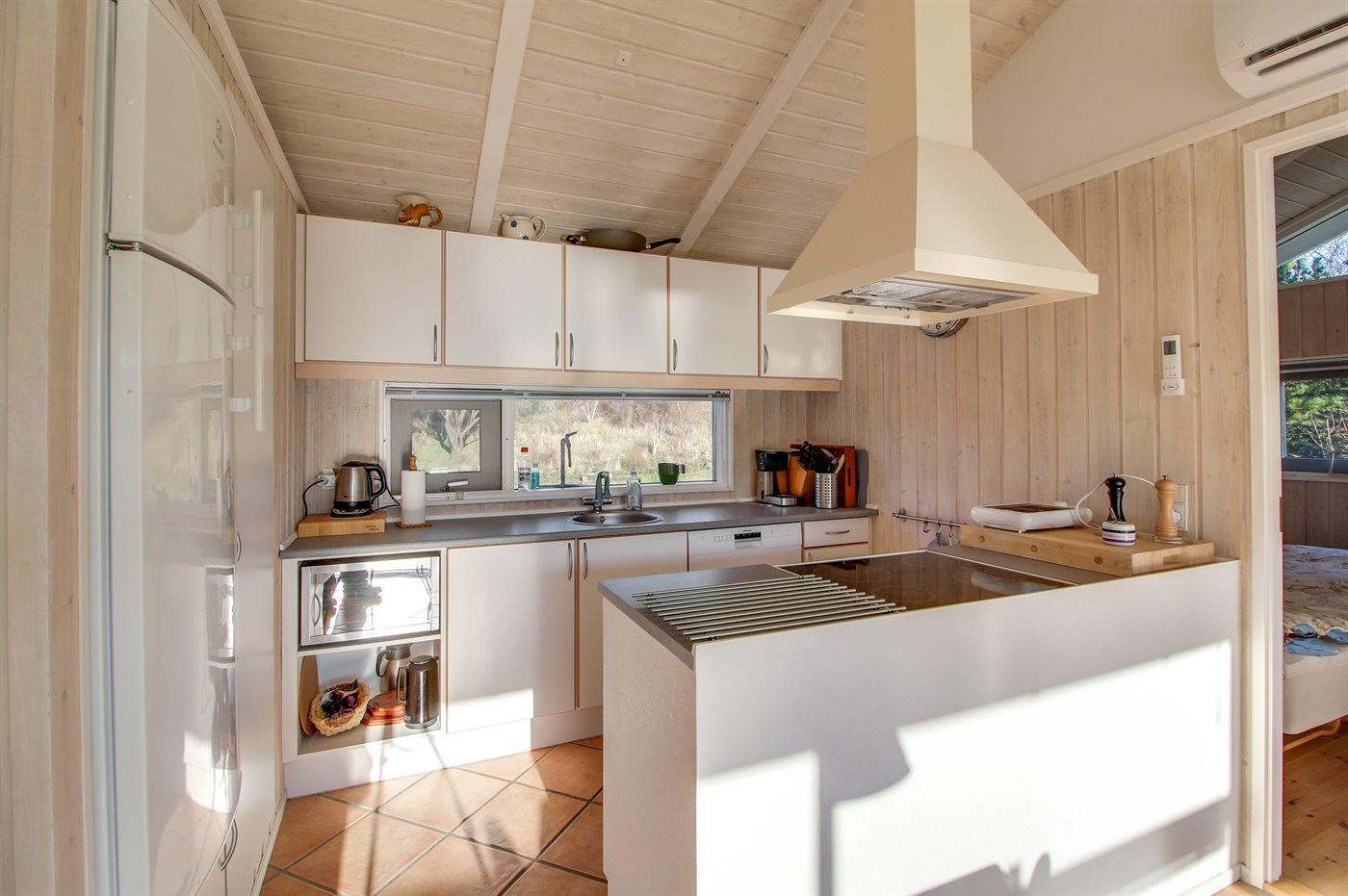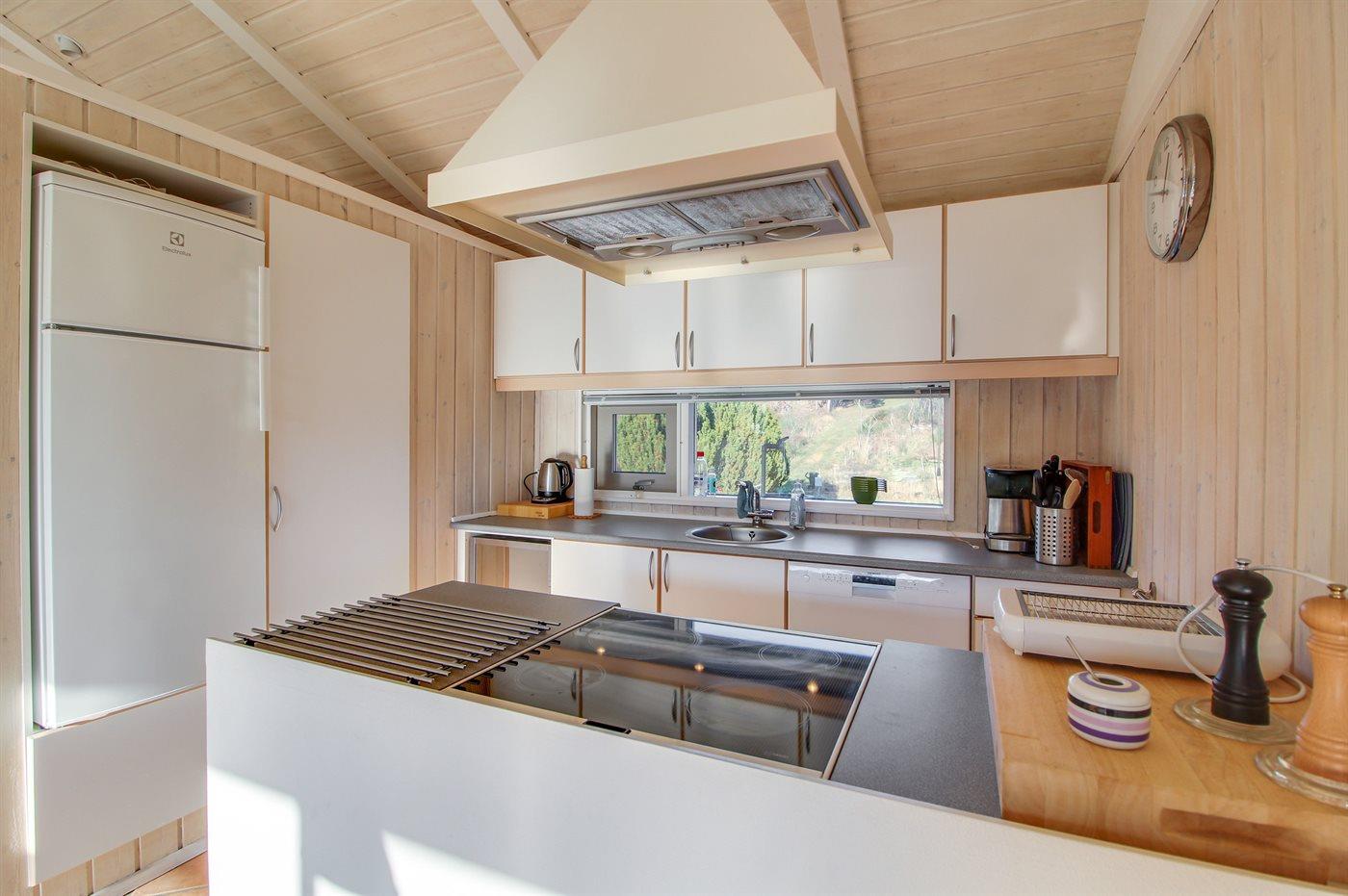 Køkkenet er udstyret med 1 køleskab. Der er 4 keramiske kogeplader, varmluftovn, mikrobølgeovn samt opvaskemaskine.