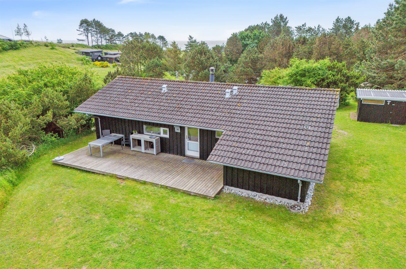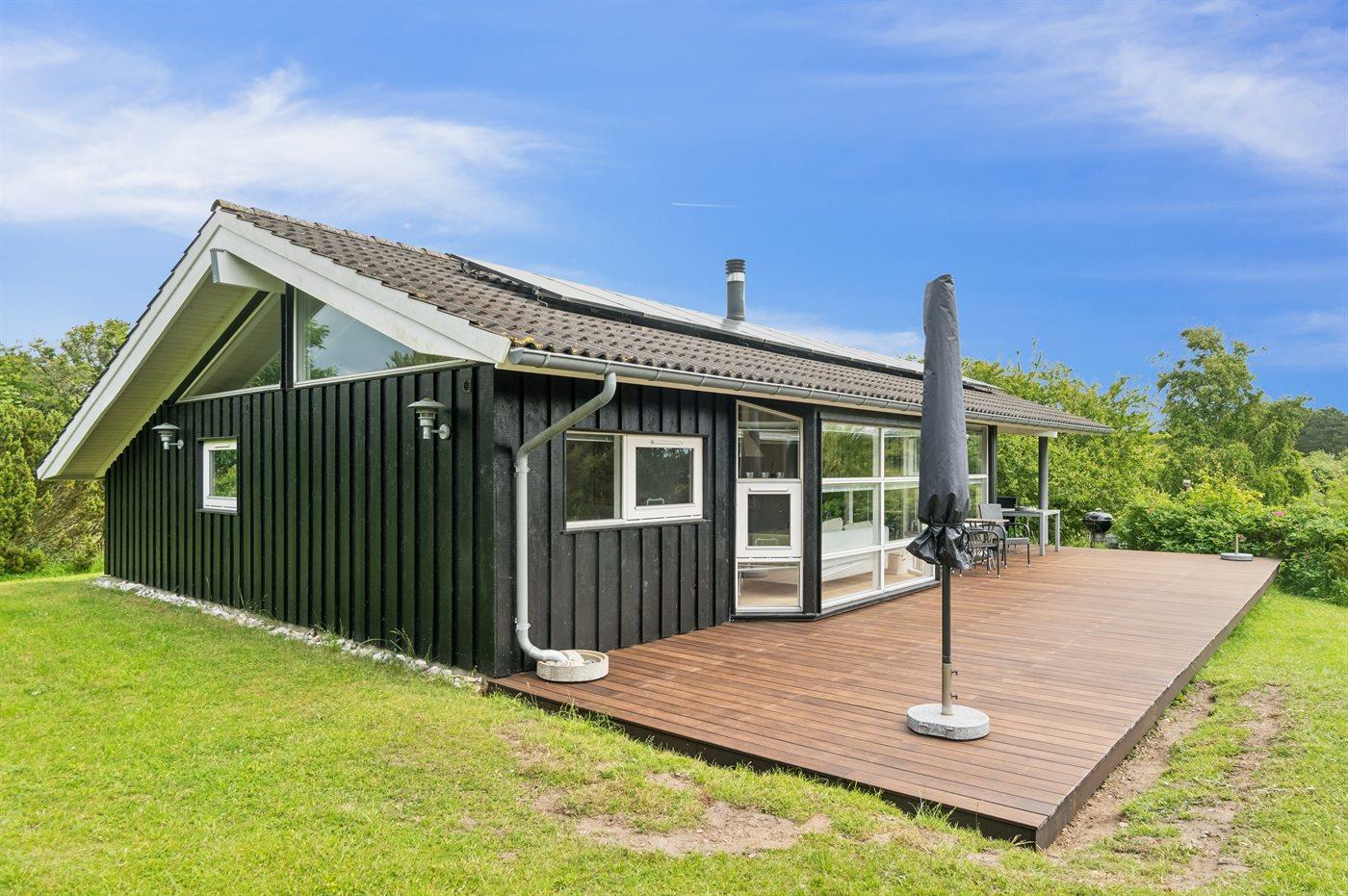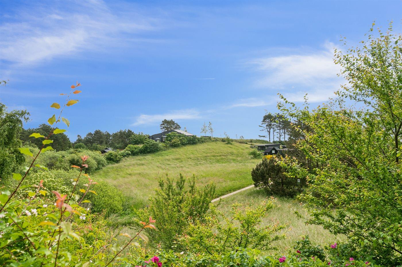 Ferieboligen er beliggende på en 2500 m² stor naturgrund. Der er 250 m til havet. Nærmeste forretning er beliggende i en afstand af 5500 m. Til ferieboligen hører 100 m² terrasseareal. Desuden er der 10 m² overdækket terrasse. Der er redskabsrum. Udendørs bruser. Der er installeret stik til opladning af elbil. Parkering ved ferieboligen.