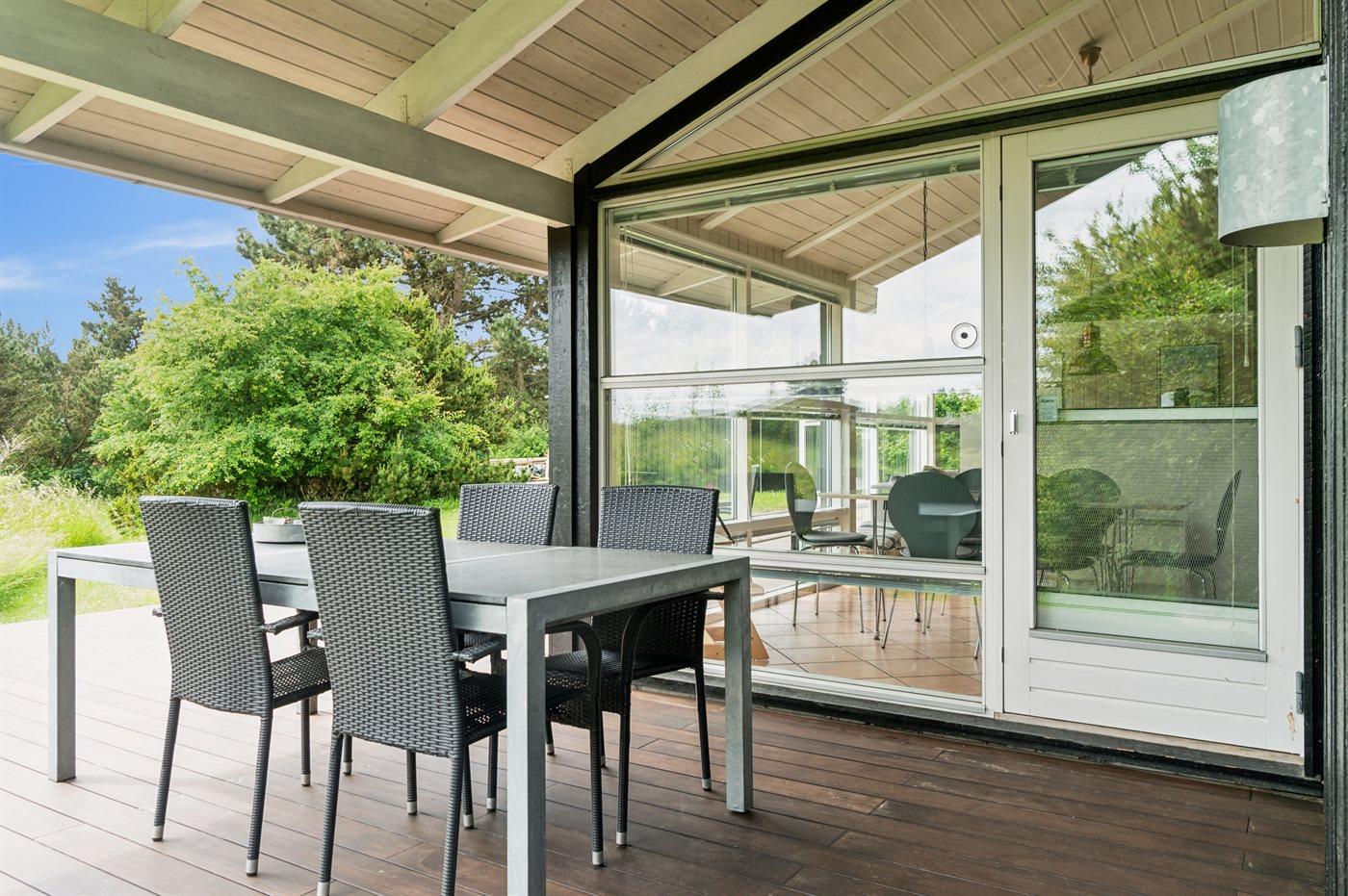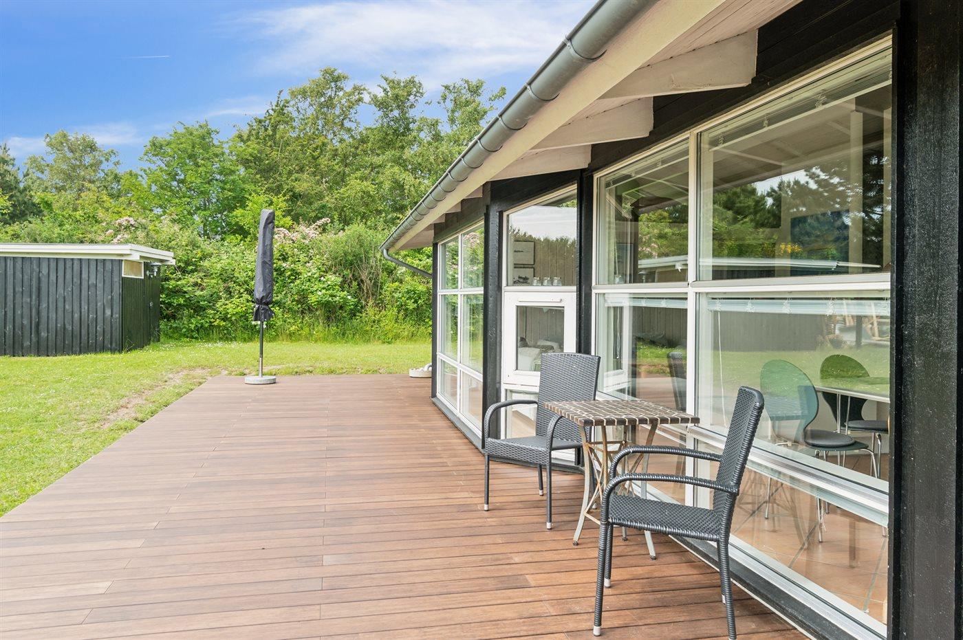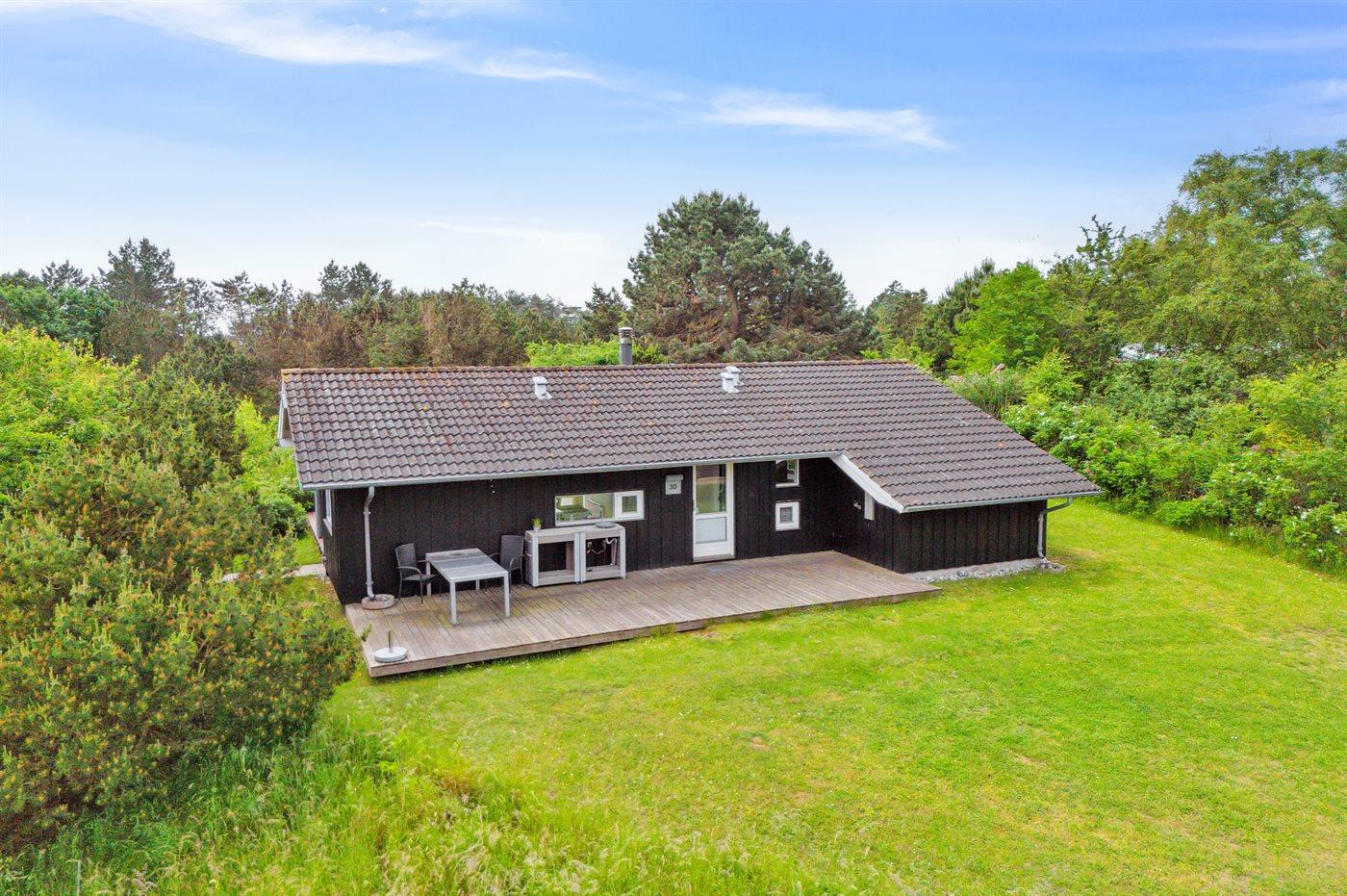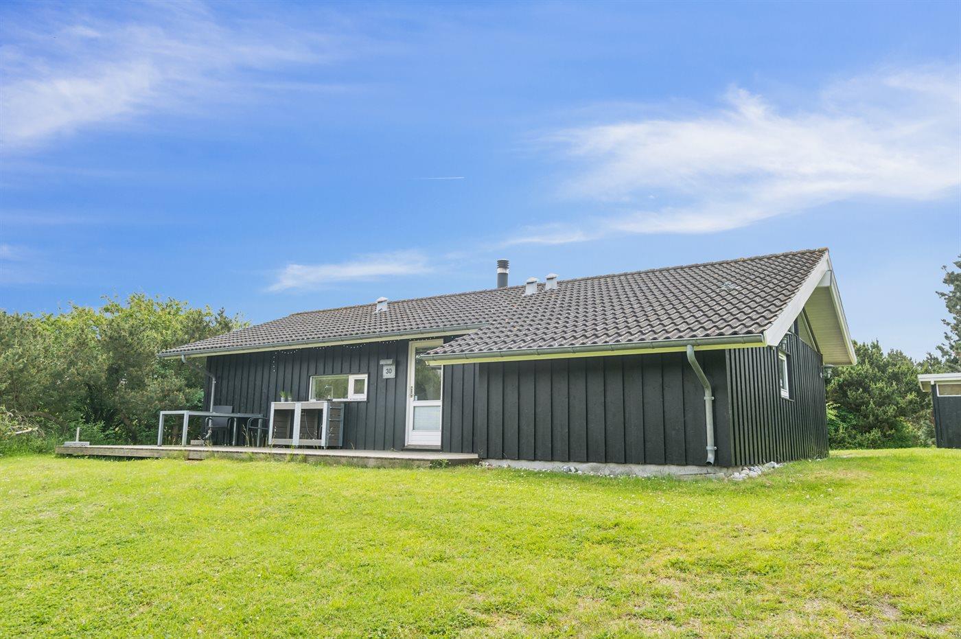 Ferieboligen er beliggende på en 2500 m² stor naturgrund. Der er 250 m til havet. Nærmeste forretning er beliggende i en afstand af 5500 m. Til ferieboligen hører 100 m² terrasseareal. Desuden er der 10 m² overdækket terrasse. Der er redskabsrum. Udendørs bruser. Der er installeret stik til opladning af elbil. Parkering ved ferieboligen.