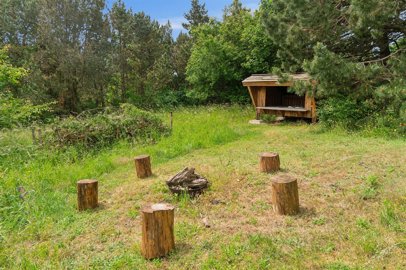 Højt beliggende sommerhus med fantastisk udsigt over det kuperede landskab. Huset ligger på en stor grund i et lille sommerhusområde i rolige og naturskønne omgivelser, tæt på badestrand og Sletterhage Fyr.