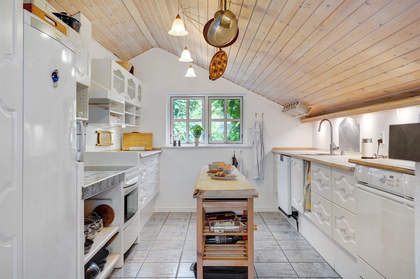 Køkkenet er udstyret med 1 køleskab. Der er 4 keramiske kogeplader, varmluftovn samt opvaskemaskine.