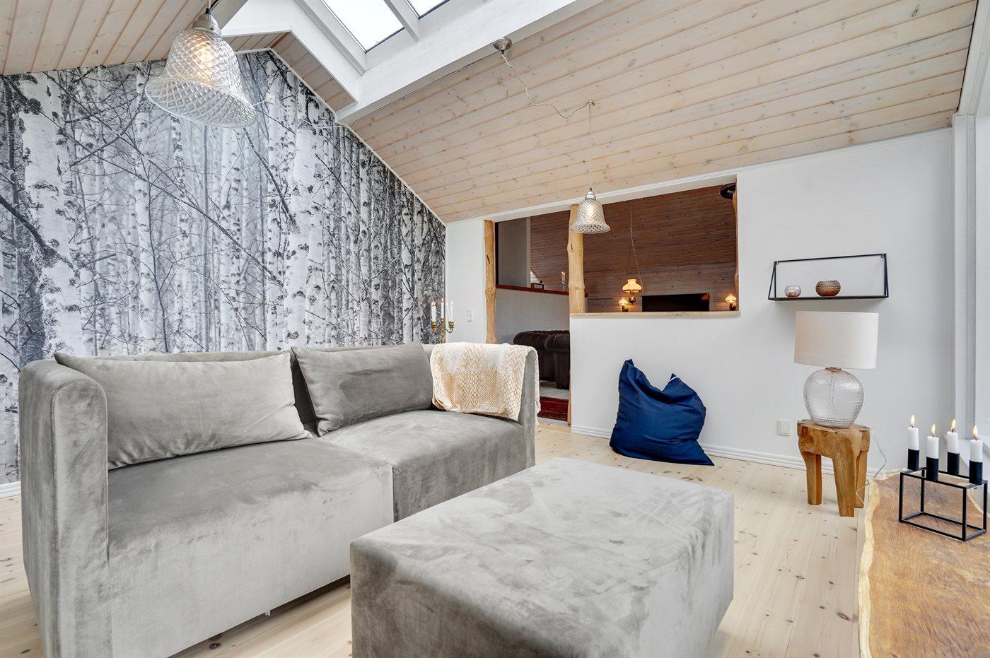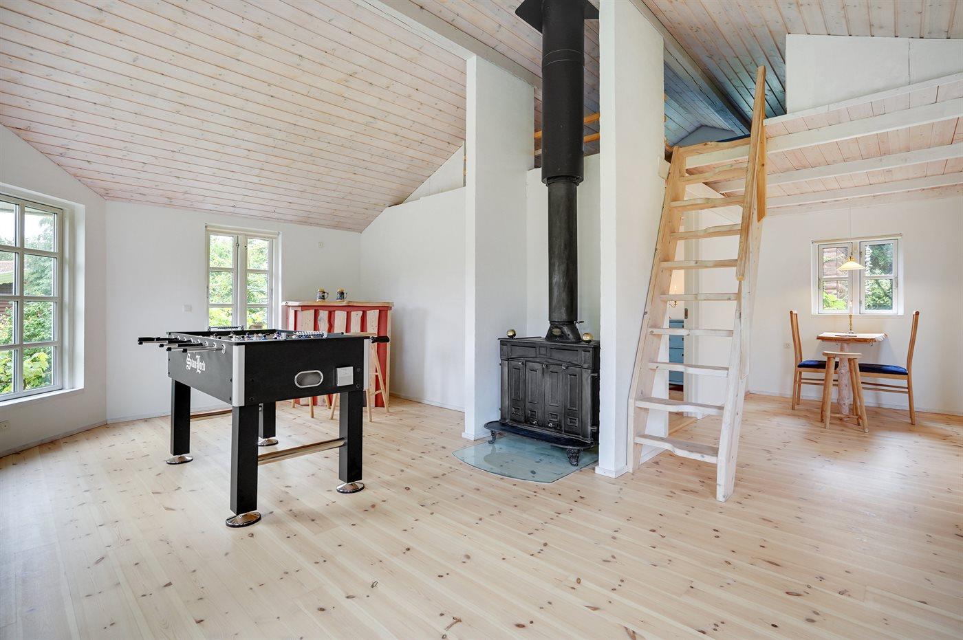 Indvendig fremstår huset lyst og moderne med god plads og hvor der bl.a. er mulighed for at spille bordfodbold.