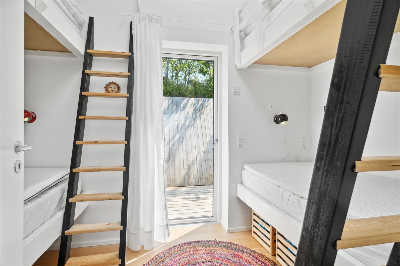Der er i alt 5 soveværelser. Sovepladserne fordeler sig på: 8 sovepladser i dobbeltsenge. 4 sovepladser i køjesenge. Derudover er der 1 stk. barneseng.