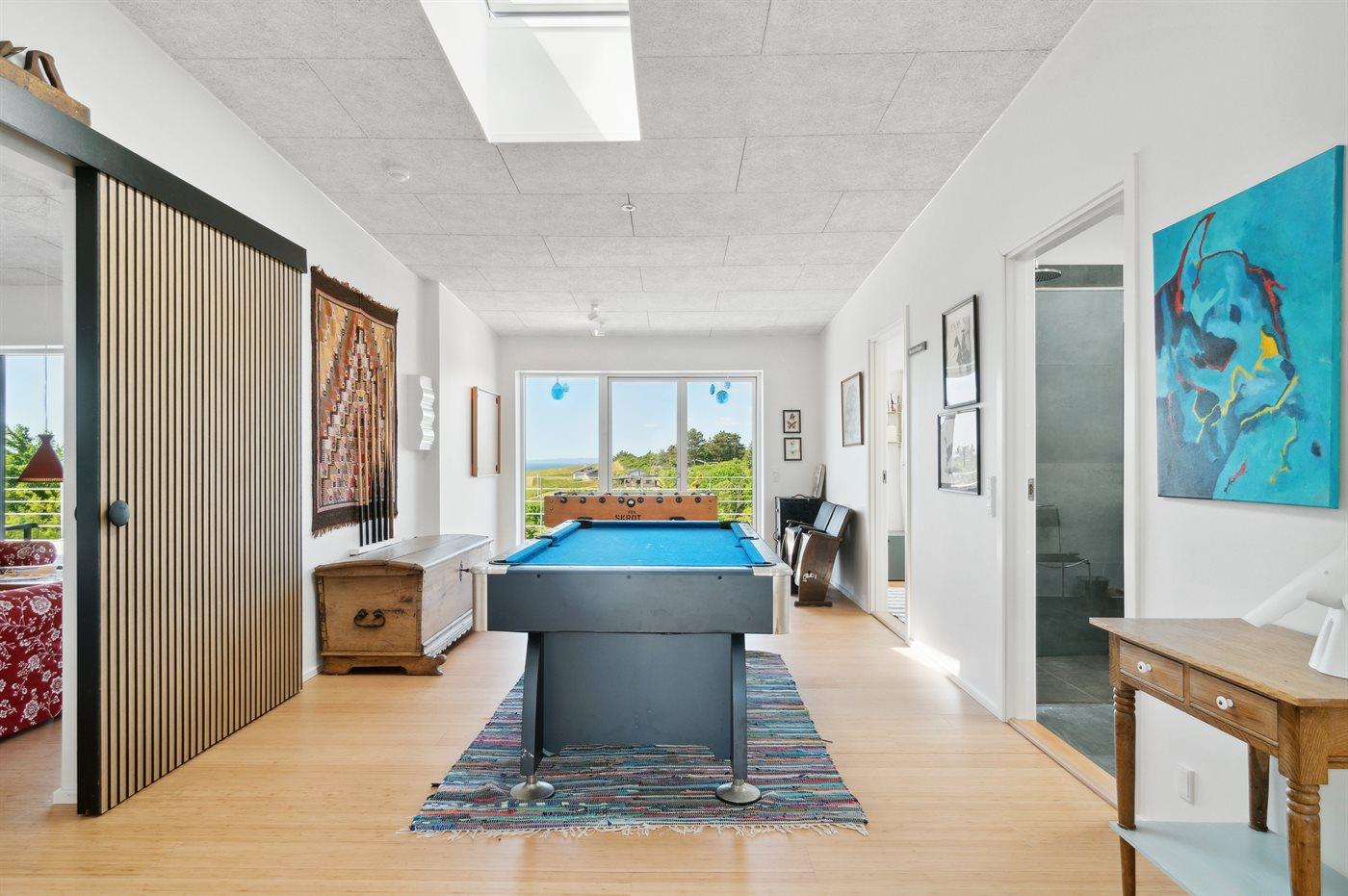 Dette sommerhus er mere end blot enestående beliggenhed og imponerende arkitektur. Det er også en legeplads for sjælen og kan rumme op til 12 mennesker uden at give afkald på komfort og rummelighed. Det imponerende aktivitetsrum er hjertet af huset, der vil henrykke både børn og barnlige sjæle. Her findes alt, hvad man kunne ønske sig af underholdning, herunder et poolbord, bordtennis, bordfodbold, dart og bobspil. Uanset om man er til konkurrence eller bare ønsker at have det sjovt og skabe uforglemmelige minder, vil dette rum være en kilde til glæde og latter.