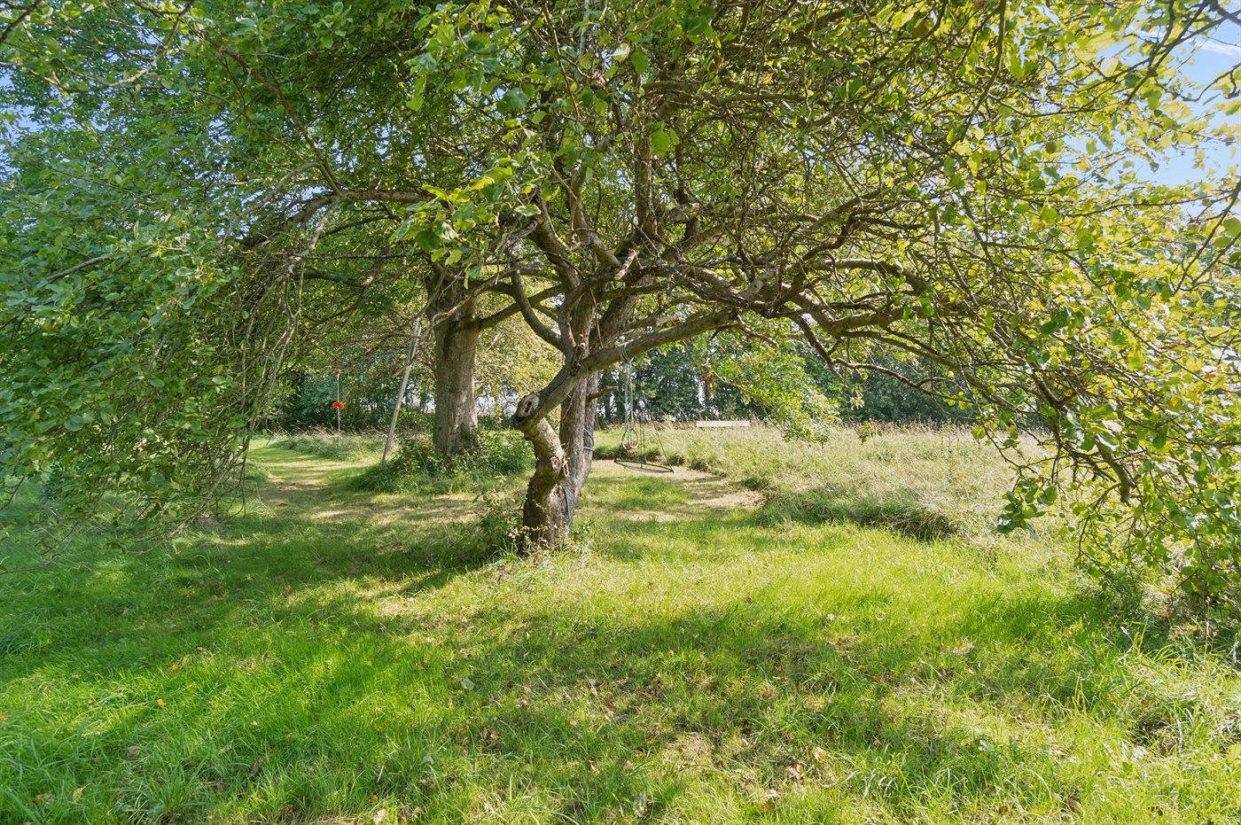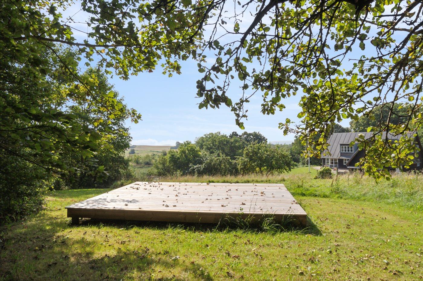 Ejendommen på 12.000 m2 er omkranset af træer, en fin sø mod syd og har ingen naboer - bortset fra et par frilandskøer. Der er mange frugttræer, og gæster er velkomne til at plukke æbler, pærer og blommer.